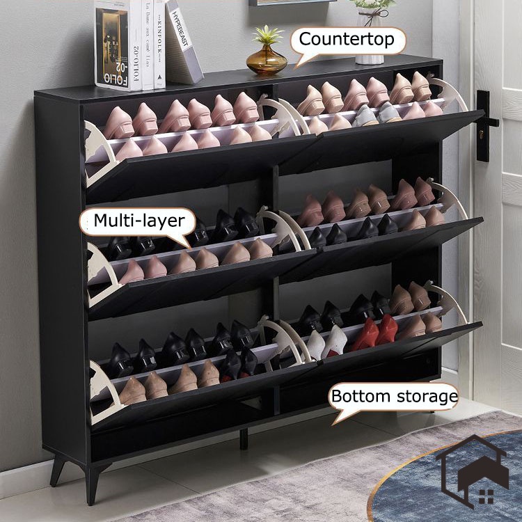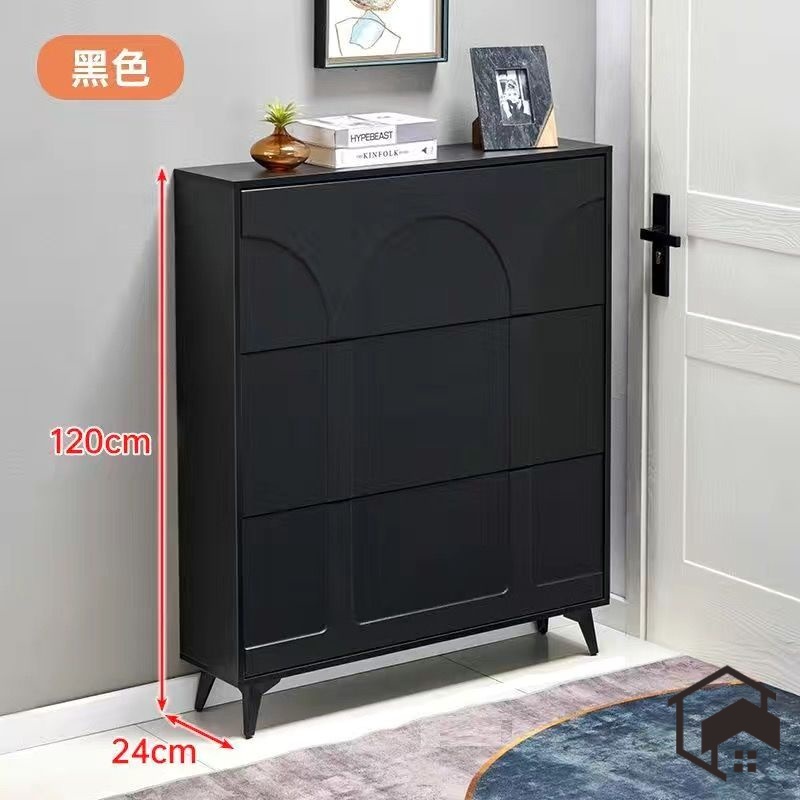 🔥Ready Stock🔥Black Ultra-Thin Shoe Cabinet W17/24cm Tipping Bucket Narrow Shoe Cabinet Large Capacity Shoe Storage