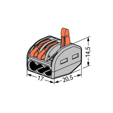 WAGO (222-413) - 3 Way Splicing Connector, 28 → 12 AWG, 32A, Cage Clamp Terminals, Polyamide, 600 V