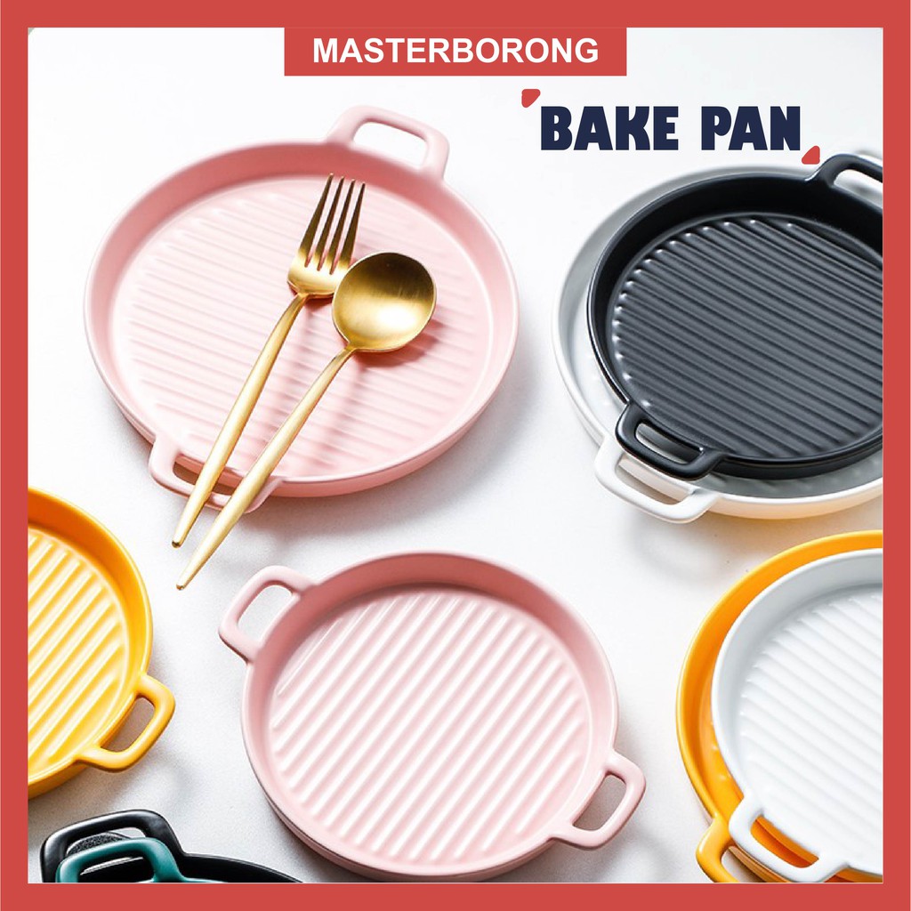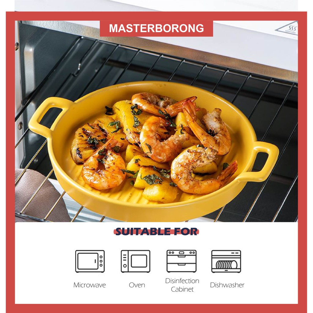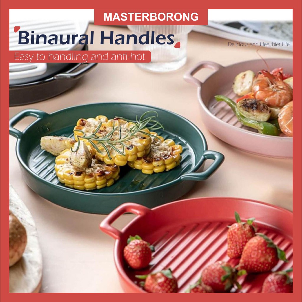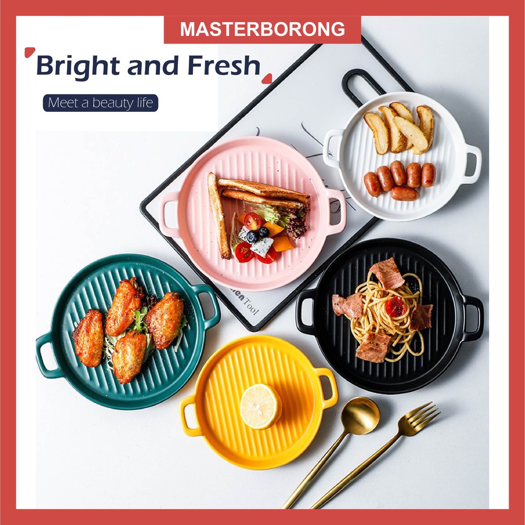 masterborong Nordic Style Ceramic Binaural Pizza Plate Main Dish Cookware Spagetthi Pinggan