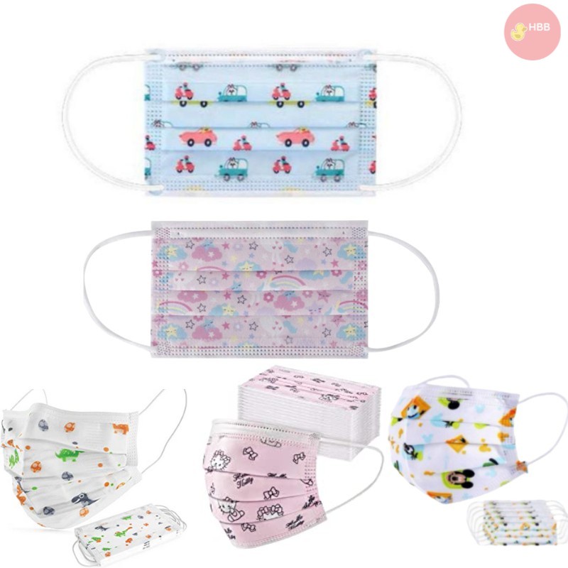 Mask | Kids Mask Cartoon | Mask kanak-kanak Kartun Lelaki Perempuan | 50pcs Disposable 3 Ply Face Mask For Kids | HBB