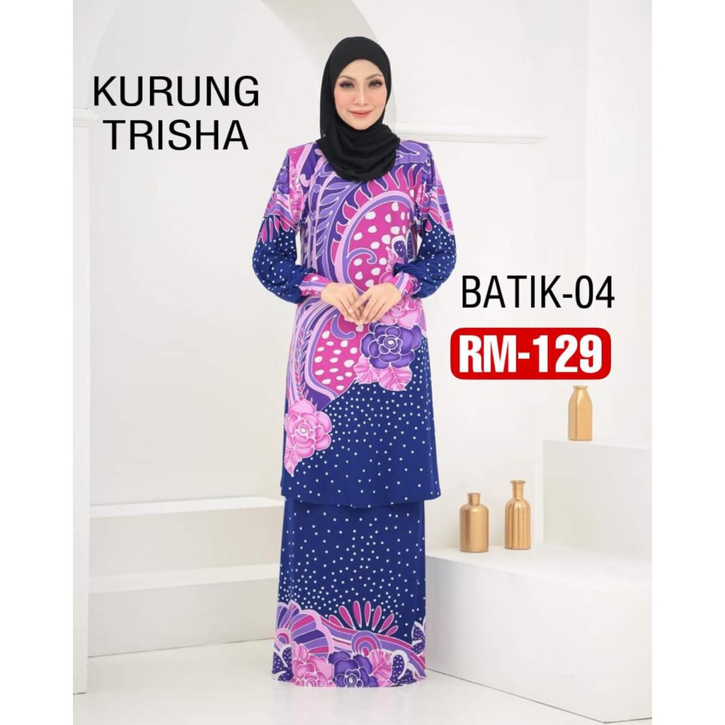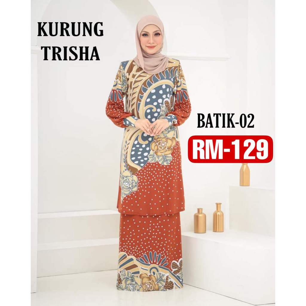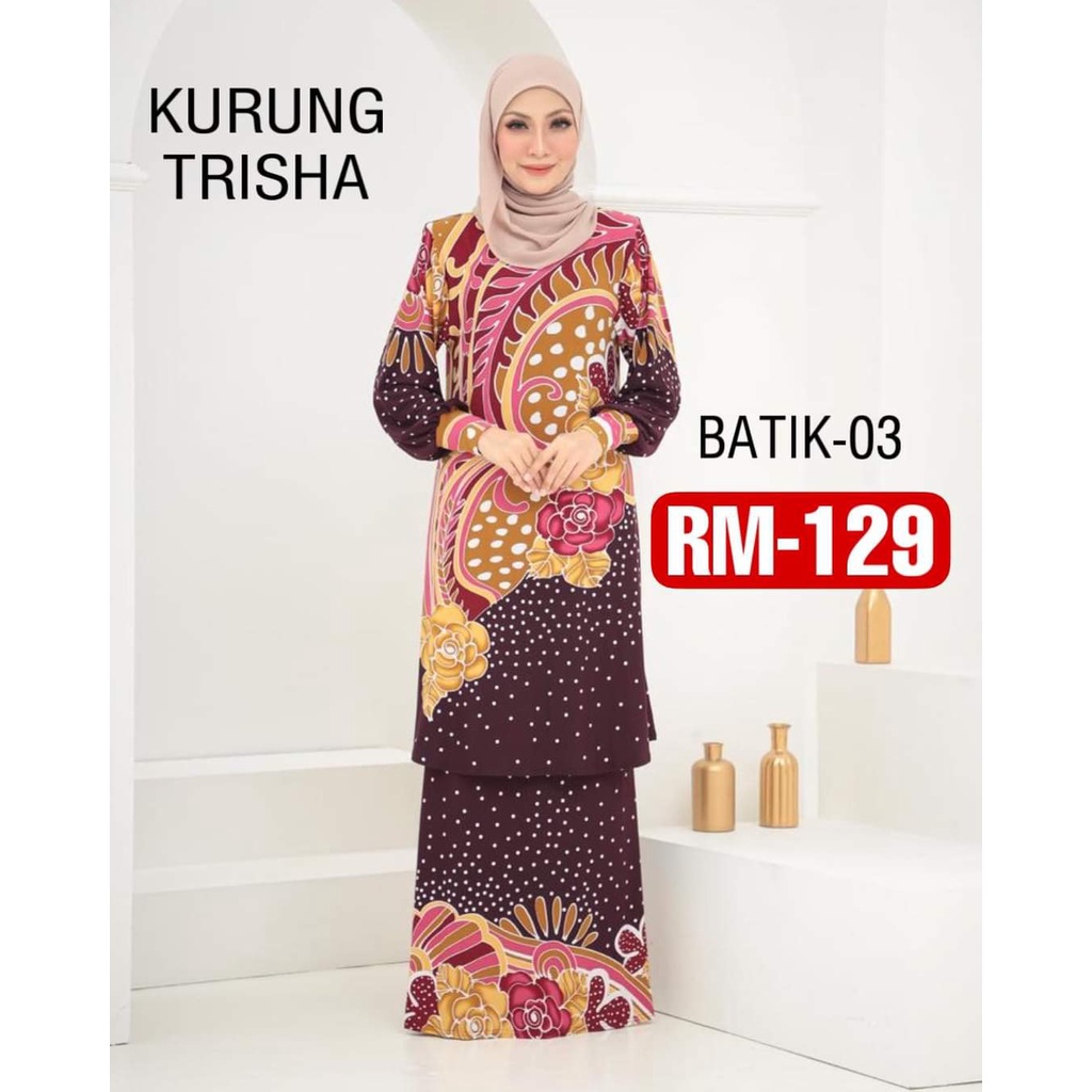 B01B10 Baju Kurung Moden Corak Batik Anti-Kedut Labuh Patuh Syariah Selesa Cantik Anggun Bergaya.