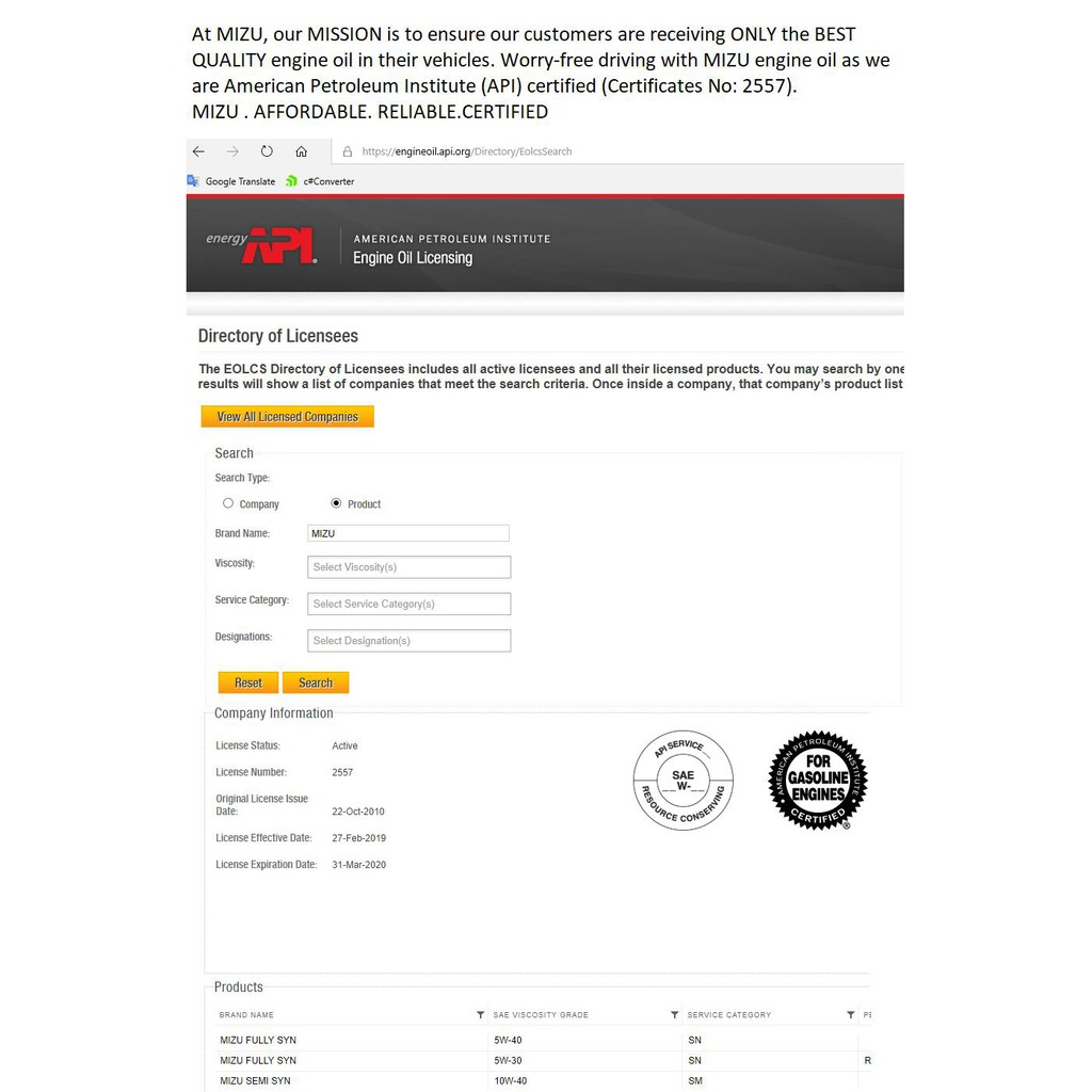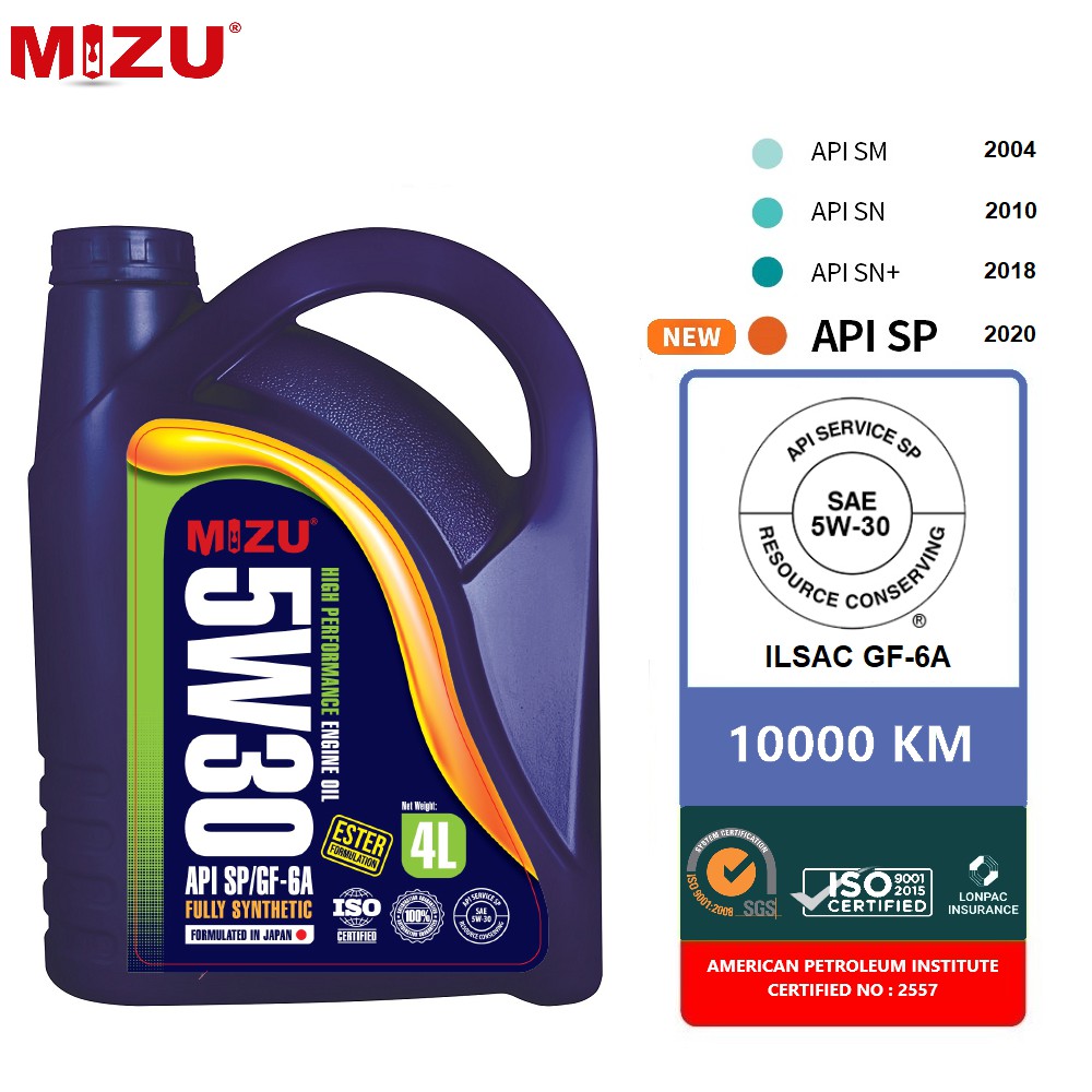 [2021 API SP/GF-6A] MIZU 5W30 [Ester Formulated] Car Engine Oil 4L Fully-Synthetic 5w30 minyak hitam bunga api minyak
