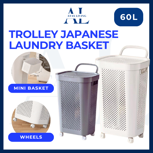 🔷ATAS🔷 45L/60L Japanese Style Dirty Clothes Basket Laundry Basket Bakul Baju Raga Kain With Cover