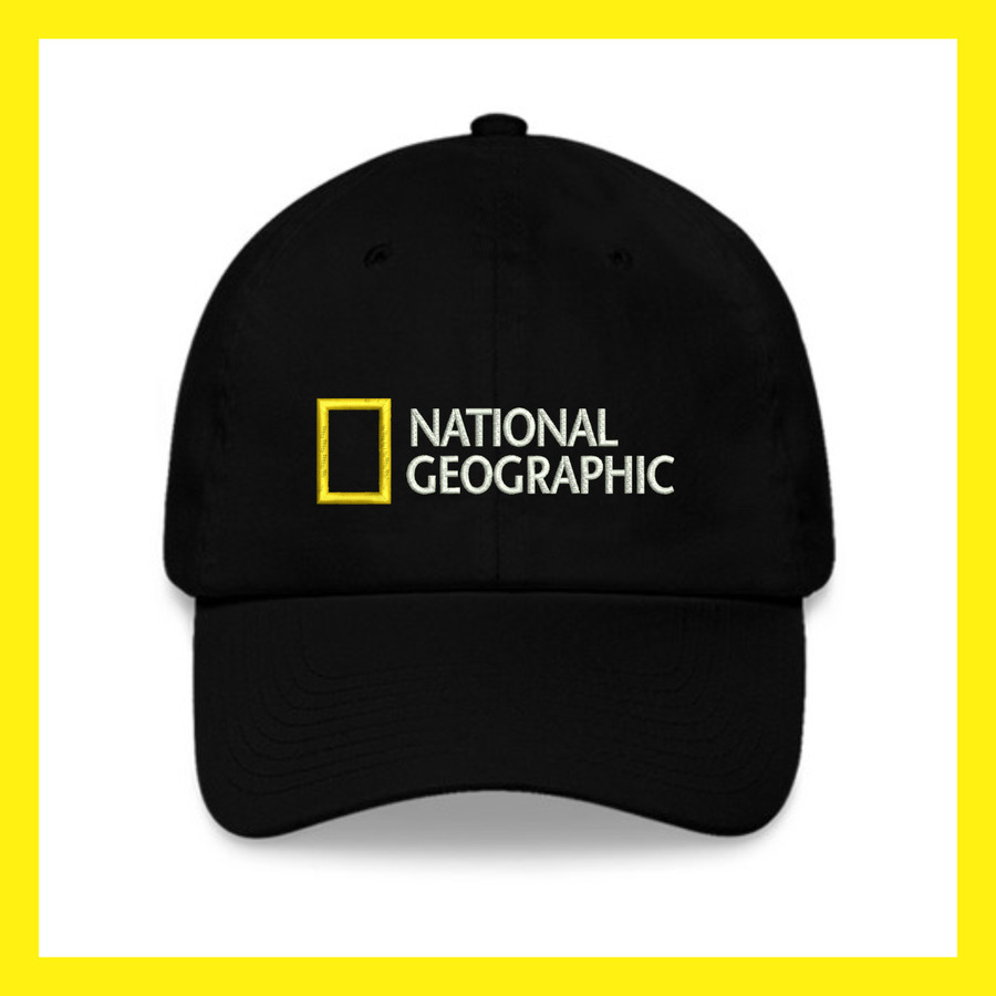 BASEBALL hat with NATIONAL GEOGRAPHIC logo, NATIONAL GEOGRAPIK denim raffle material