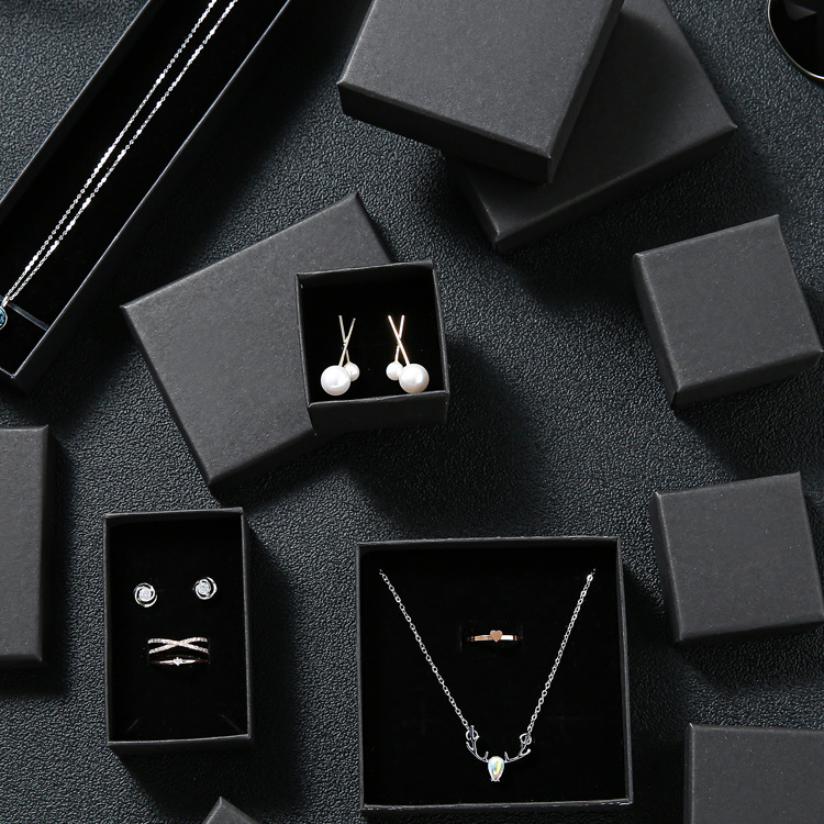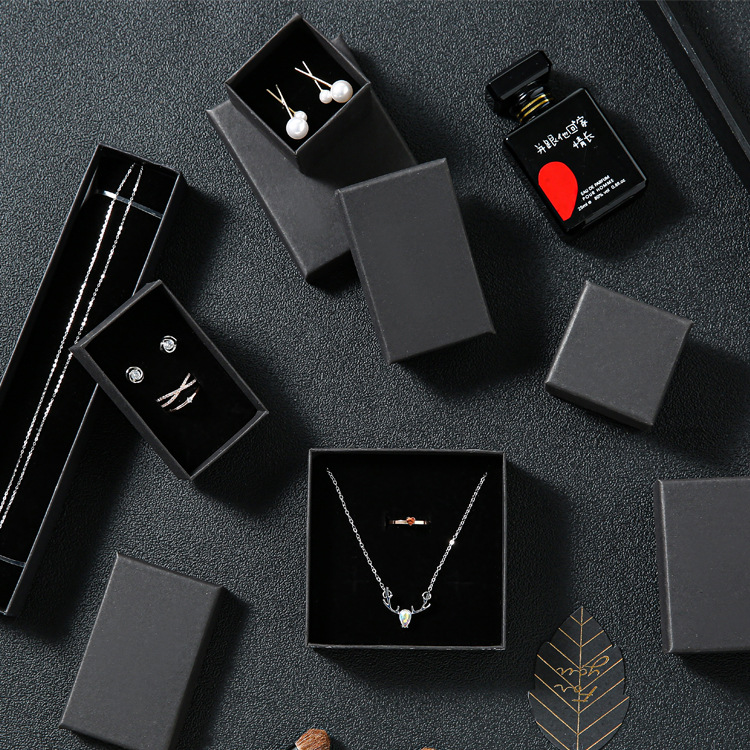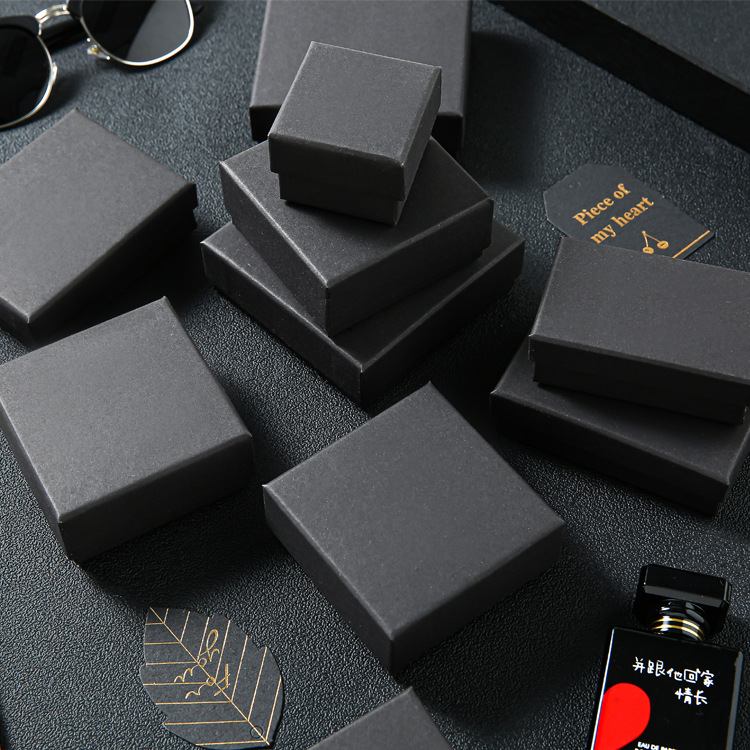 High Quality With Sponge Jewelery Display Packaging Small Box Paper Jewellery Packing Box Black Kraft Paper Ring Earrings Bracelet Necklace Jewelry Box Storage Earring