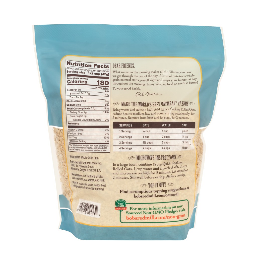(Bob's Red Mill) Quick Cooking Rolled Oats Whole Grain 快速烹饪燕麦片全麦 Oat Gulung Masak Pantas - 907g