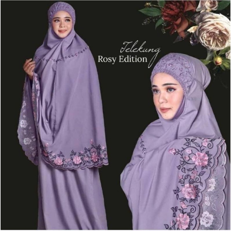 Telekung Rozy Cantik Cotton Premium Sulam 3D Ready Stok