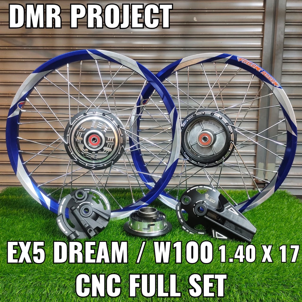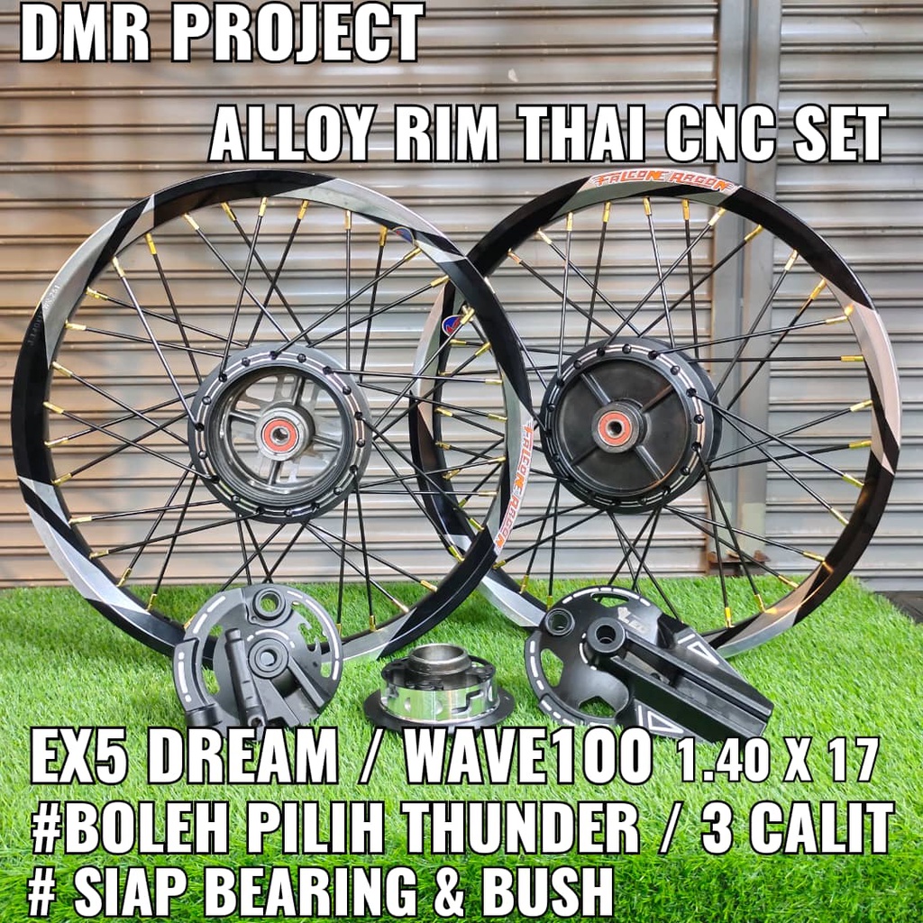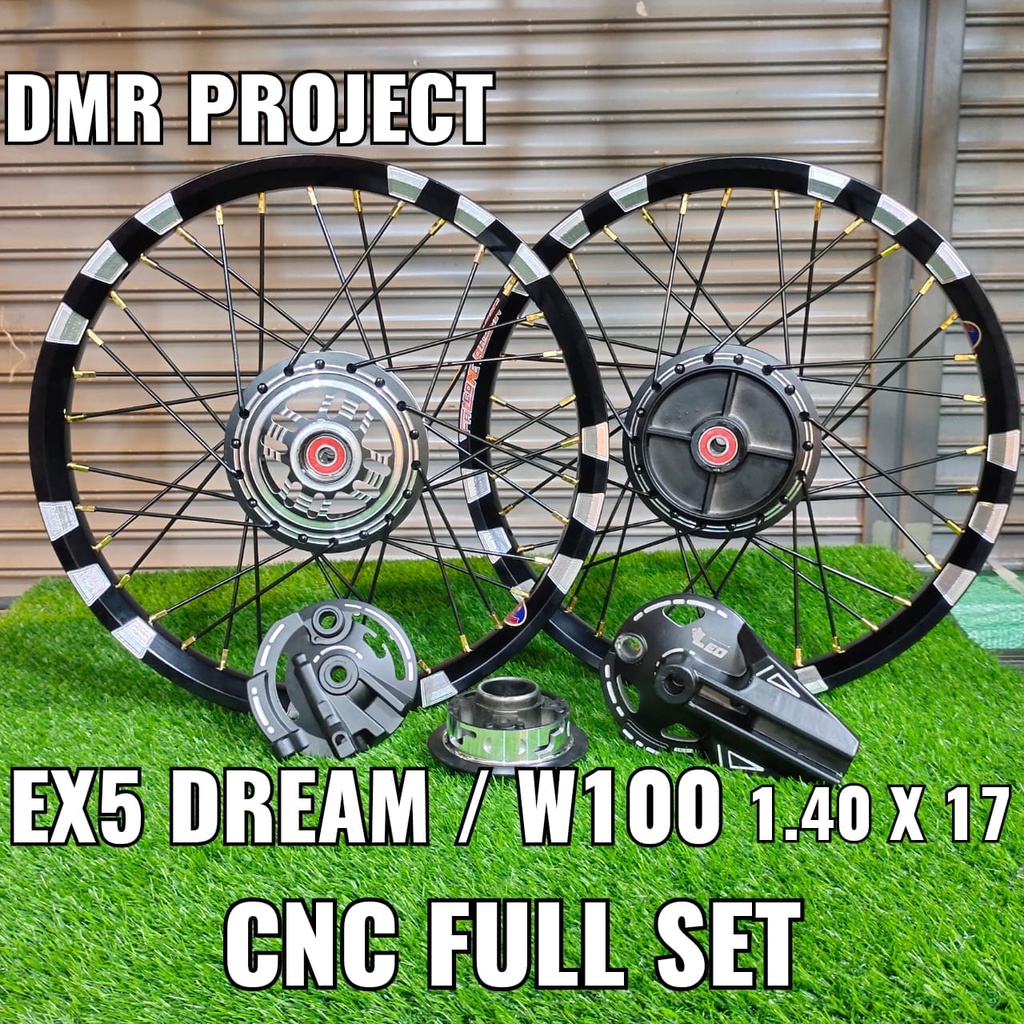 ALLOY RIM EX5 DREAM/W100 THUNDER & 3 CALIT 1.40X17 (SIAP BEARING & PASANG) COMPLATE SET BUYUNG CNC DYNO PROJECT HUB LEO