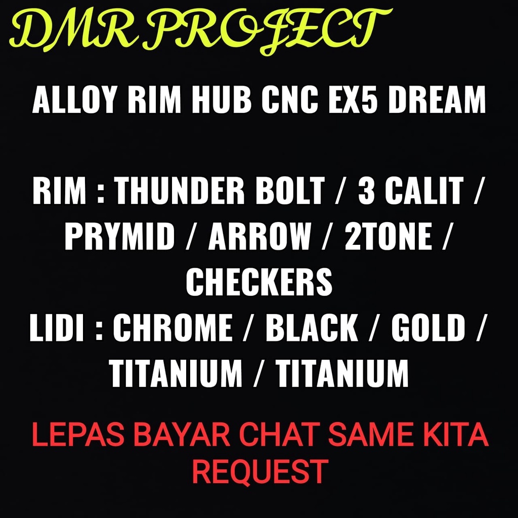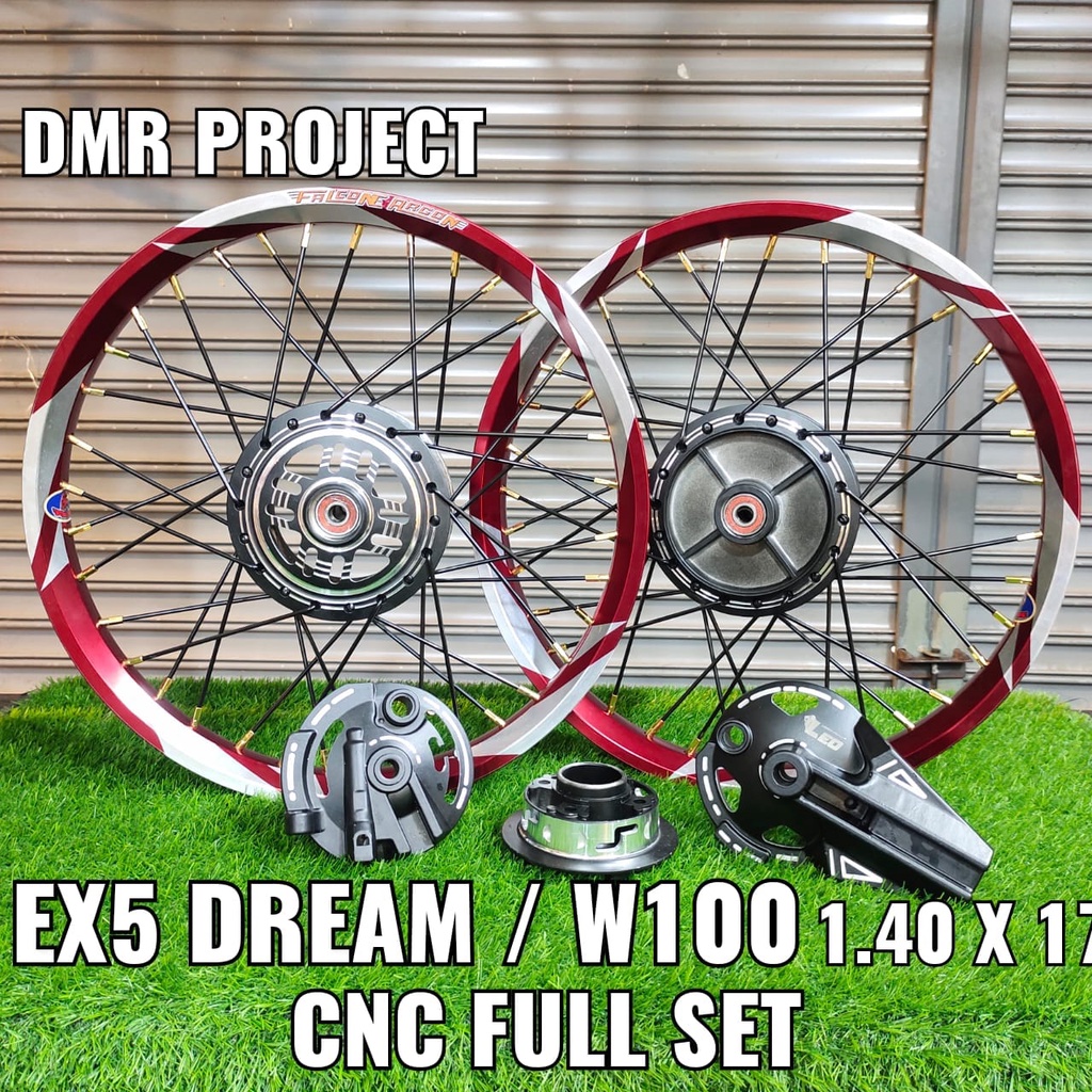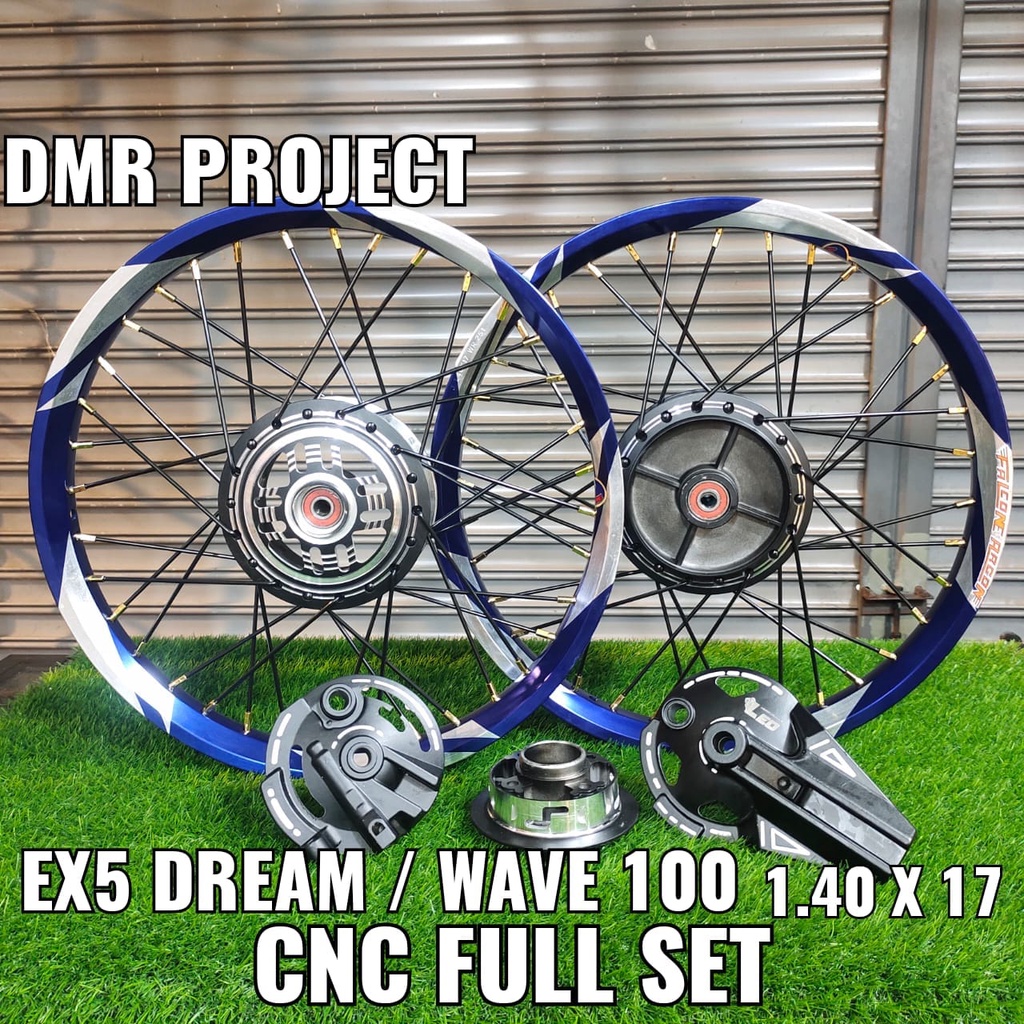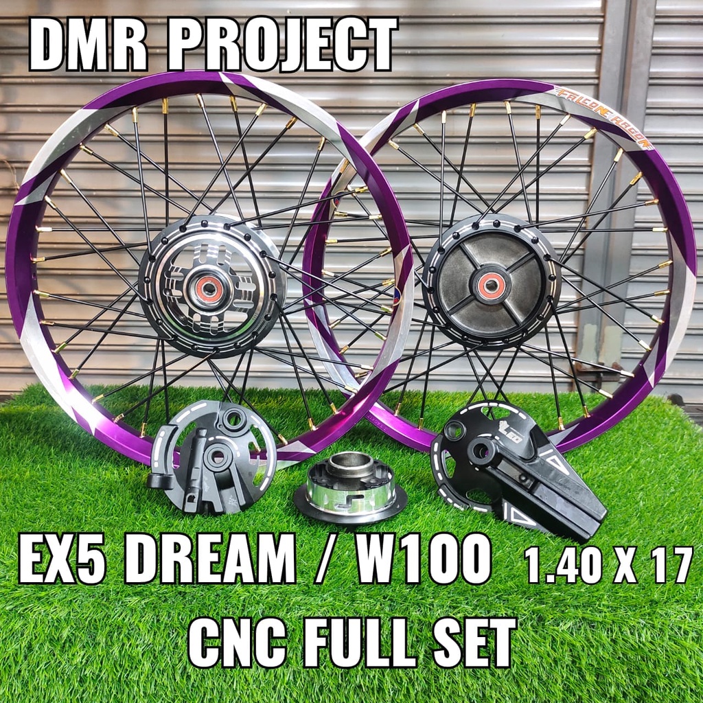 ALLOY RIM EX5 DREAM/W100 THUNDER & 3 CALIT 1.40X17 (SIAP BEARING & PASANG) COMPLATE SET BUYUNG CNC DYNO PROJECT HUB LEO