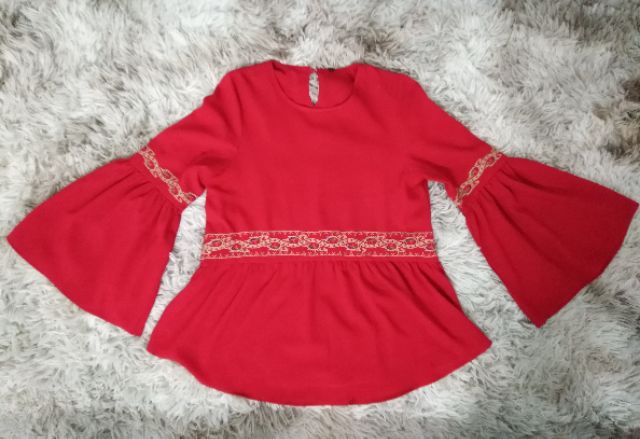 blouse top red colour / blouse merah /baju warna merah (preloved)