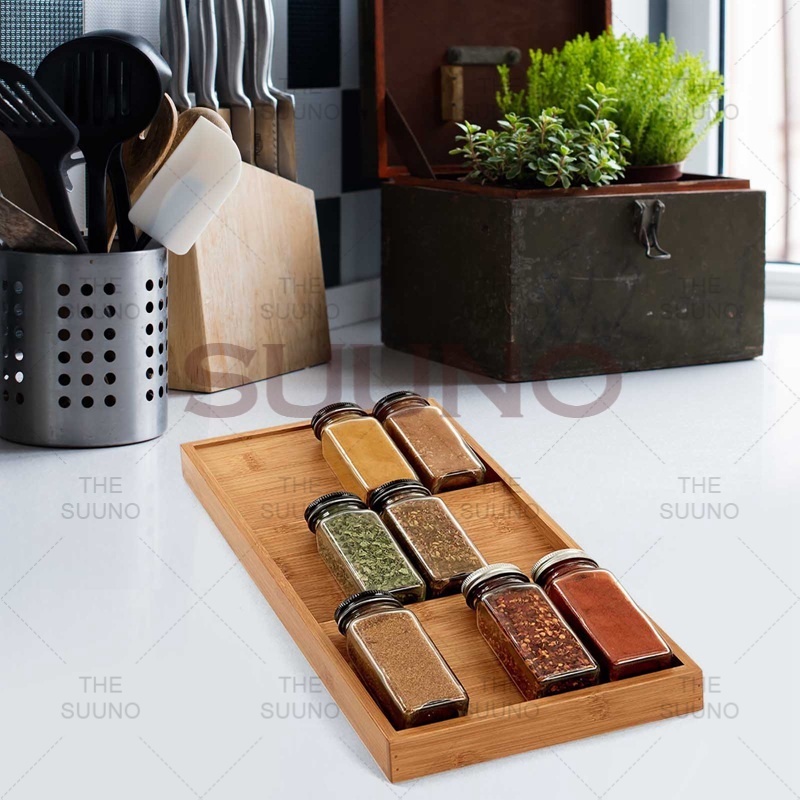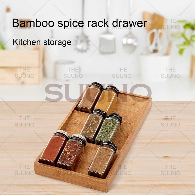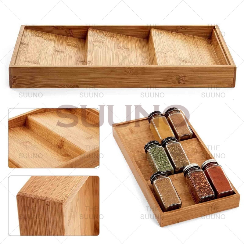3-Layer Bamboo Spice Rack, Drawer Tray Organizer, Kitchen Display Riser, Tiered Storage Rack.