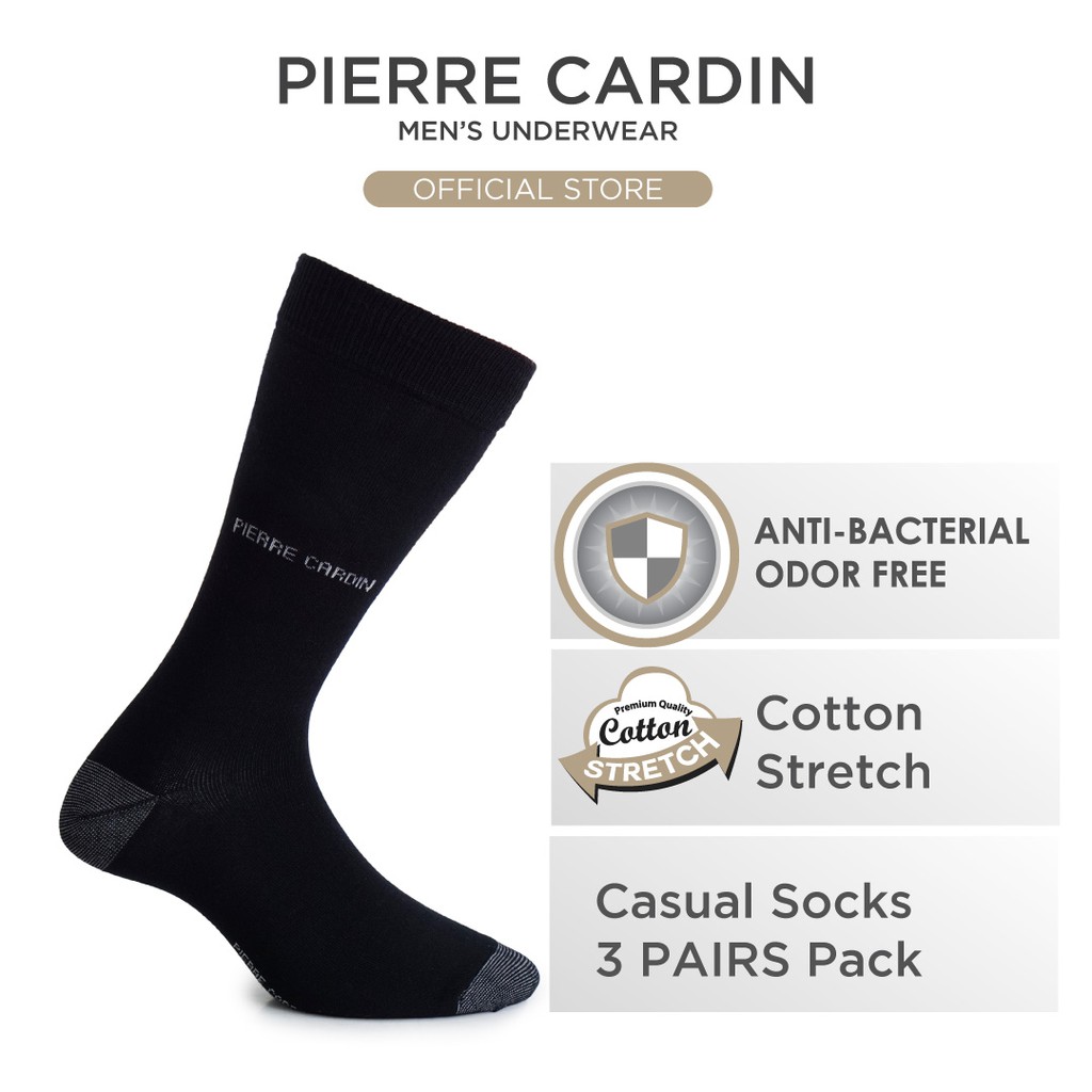 Pierre Cardin Full Length Anti-Bacterial Cotton Casual Socks - Black Colour (3 Pairs) PS6236C