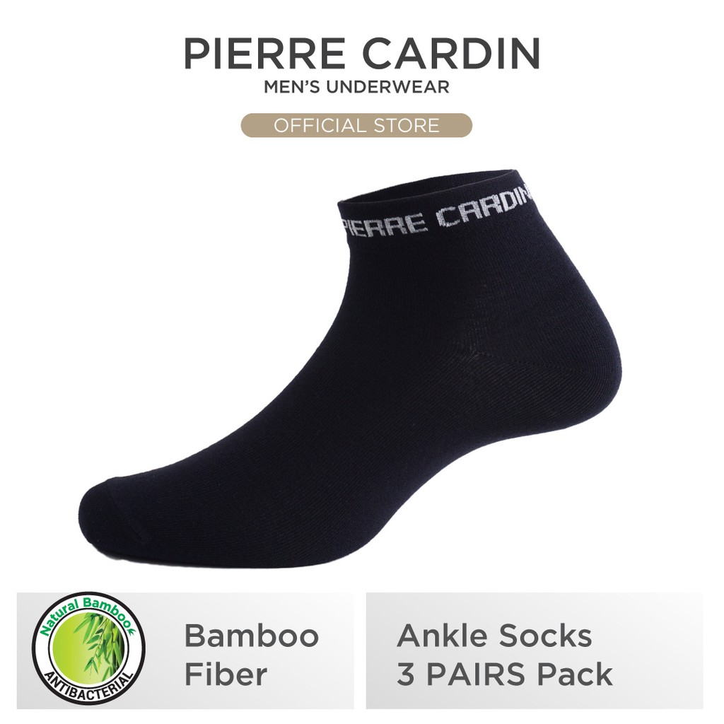 Pierre Cardin Anti-Bacterial Bamboo Ankle Socks - Assorted Colour or All Black (3 Pairs) PS7021A
