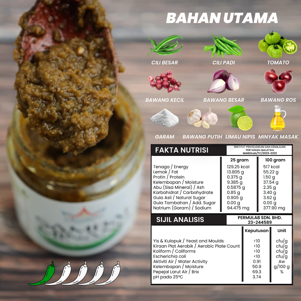 Cili Lado : Sambal Minang : 250 Gram : Mesra CKD, Mesra Vegan, Tak Pedas & Tanpa Gula Tambahan