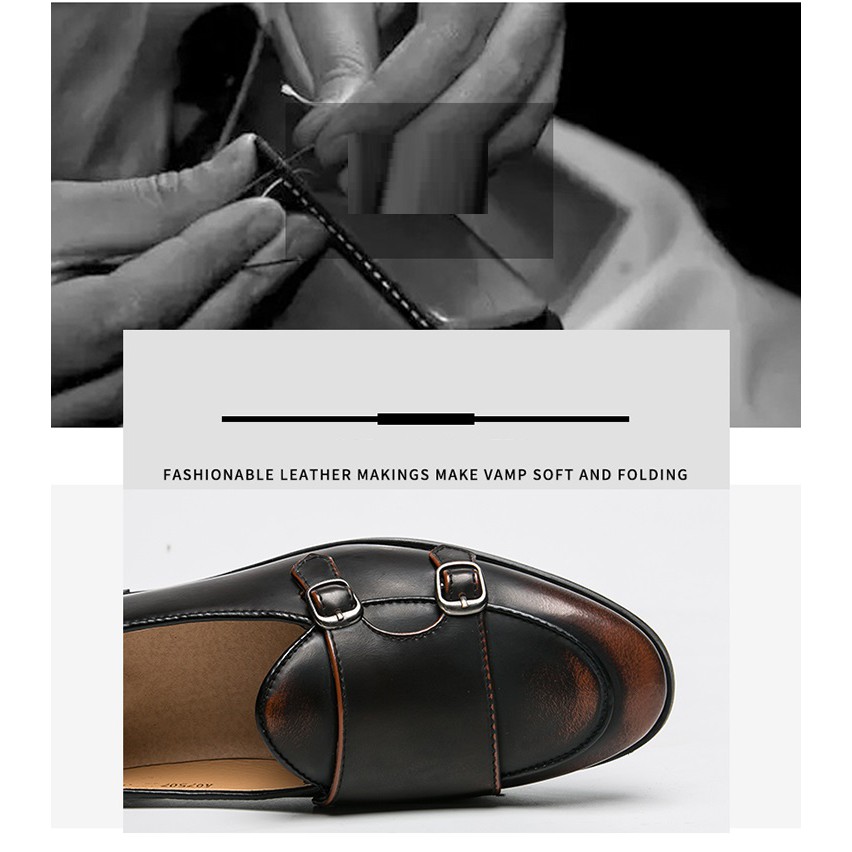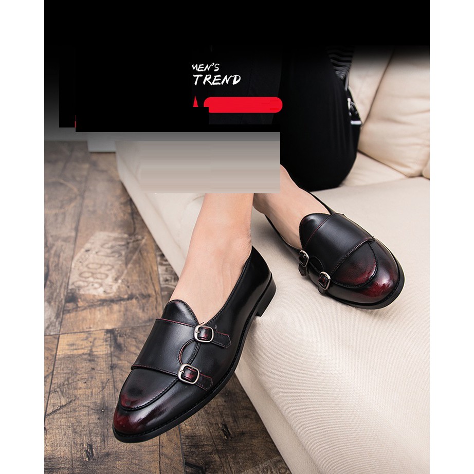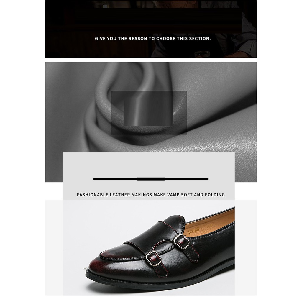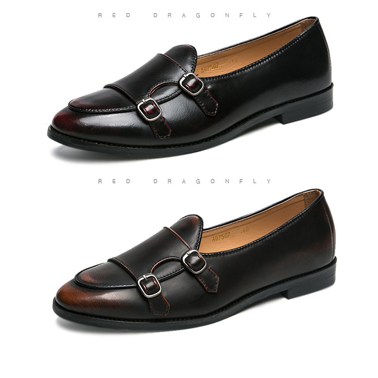 Leather Men Formal Shoes Party Pointed Toe Weddings Monk Strap Men Dress Shoes
