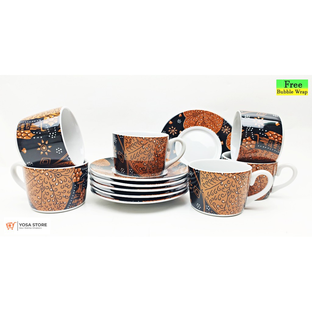 12 Pcs Black Chocolate Batik Motif Ceramic Coffee Tea Cup Set - Premium Quality