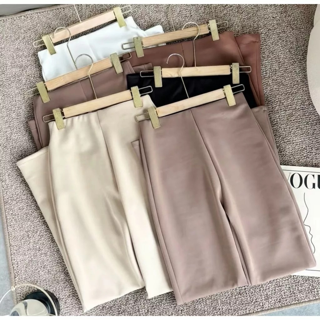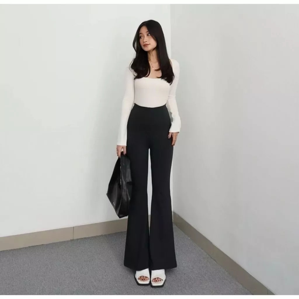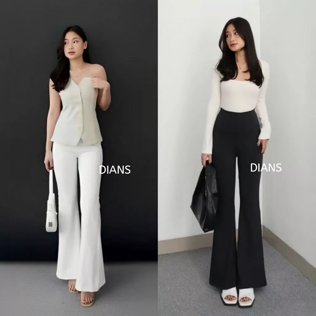 DIANS - Fit And Flare Pants Cutbray Scuba Highwaist Waist Stretch Elastic Culottes