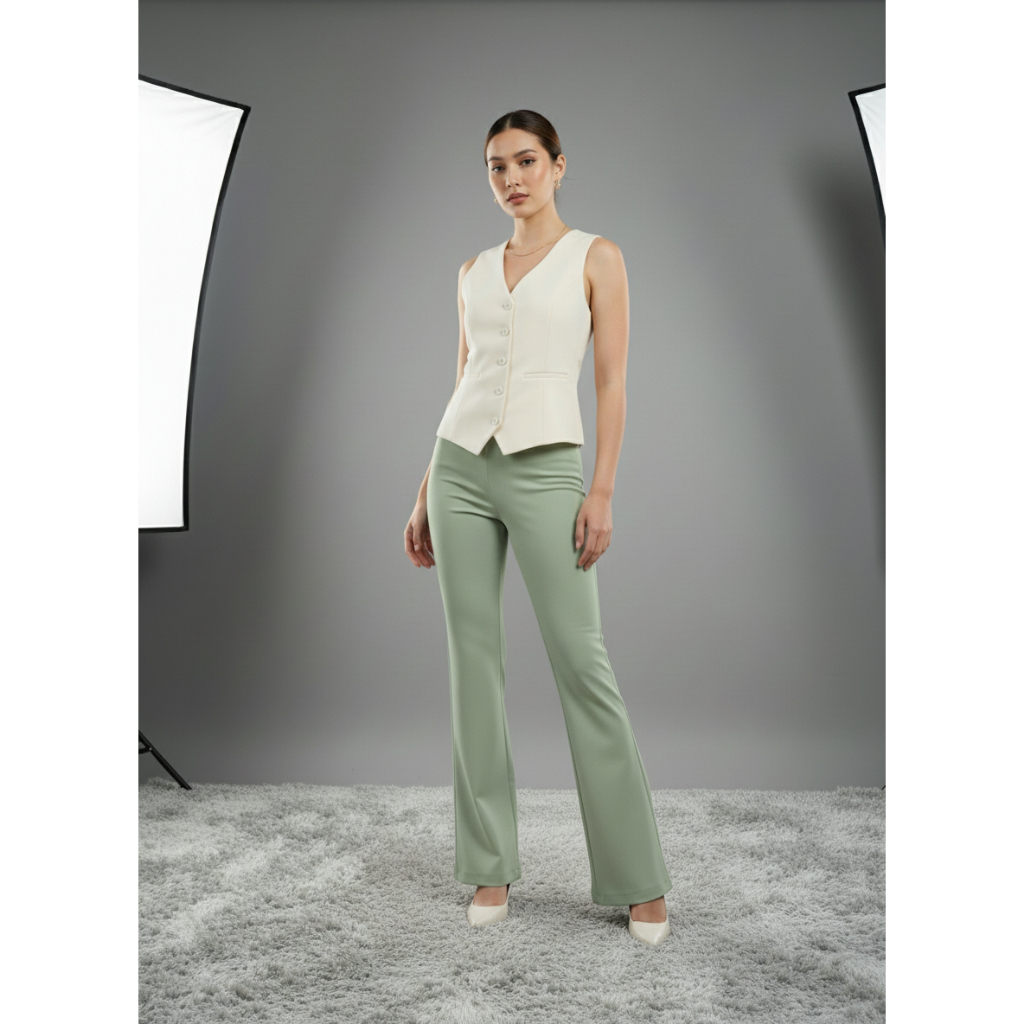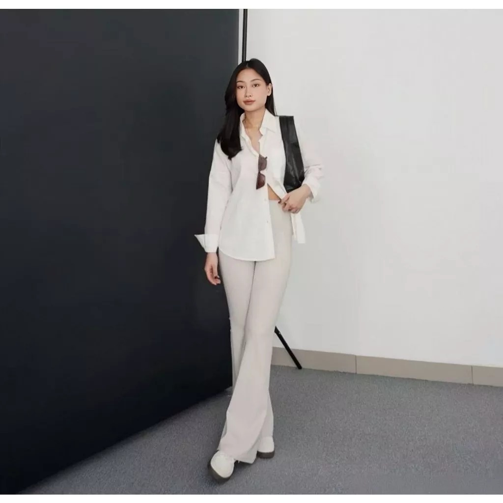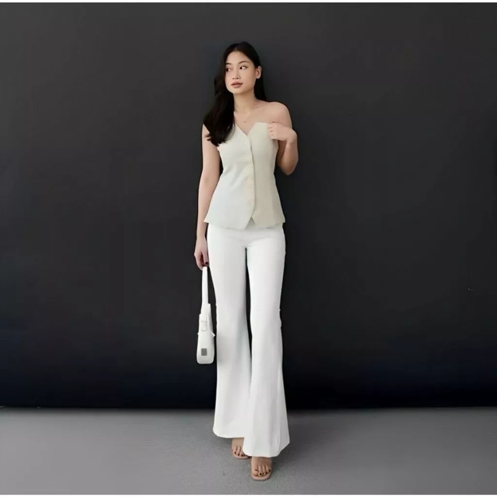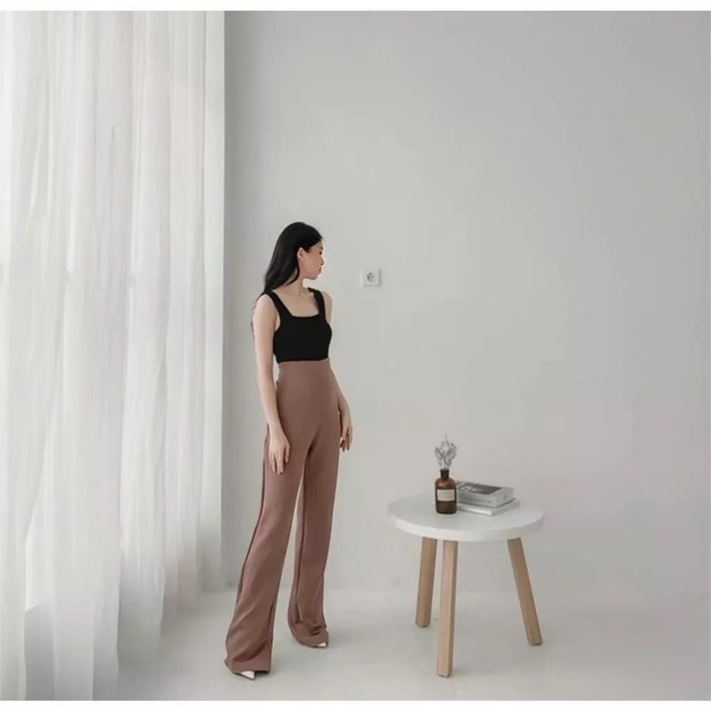 DIANS - Fit And Flare Pants Cutbray Scuba Highwaist Waist Stretch Elastic Culottes