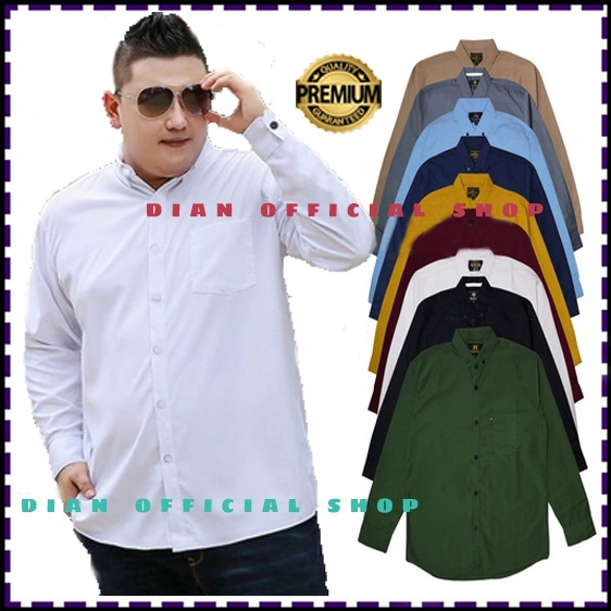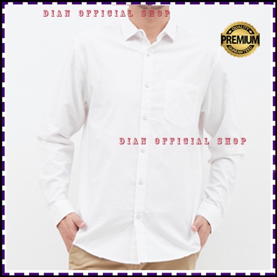 KEMEJA Men's Basic Plain Long White Shirt 1468A Jumbo