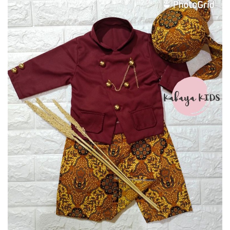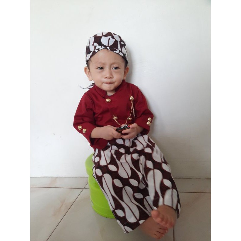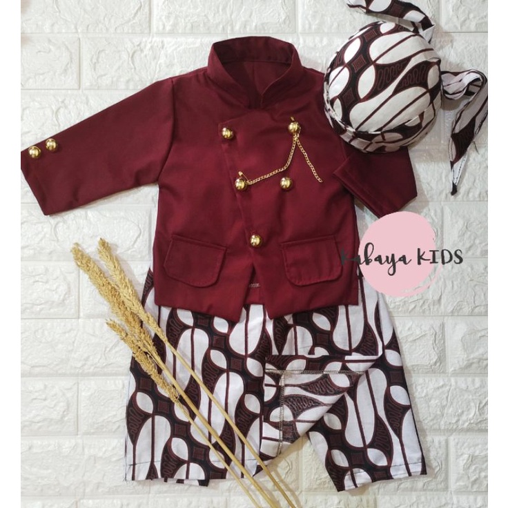 MERAH Cute Beskap Clothes for Boys and Baby Boys 1, 2, 3, 4 Years Old, Maroon Red