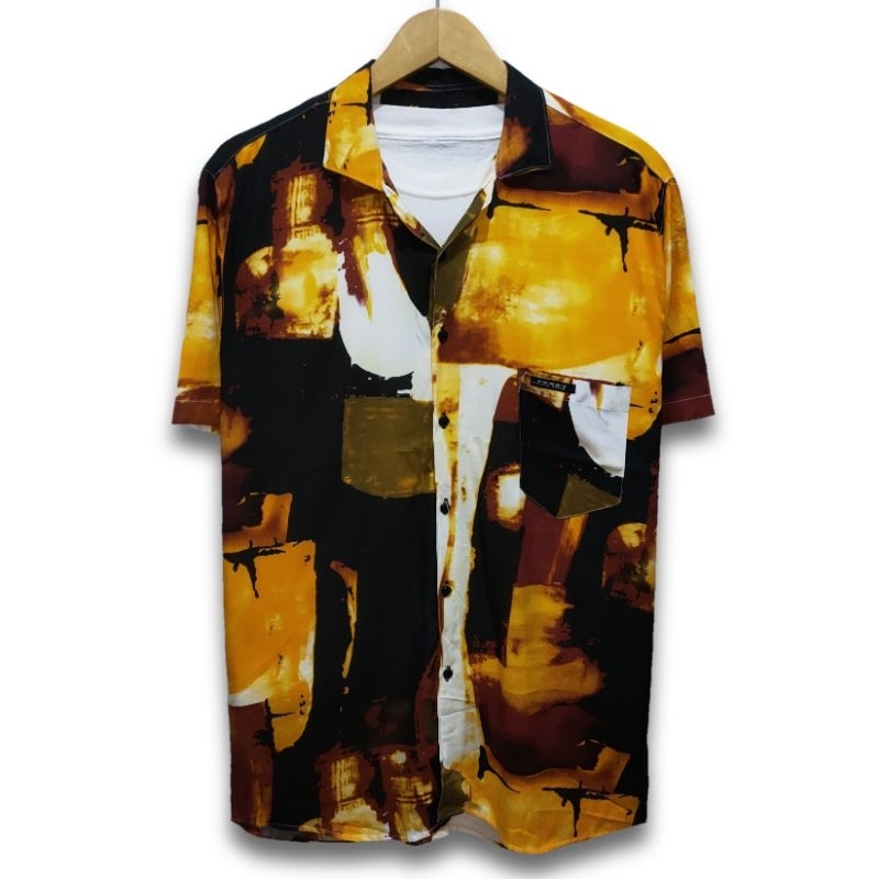 KEMEJA Vintage Hawaiian Shirt Premium Imported Rayon Material Men's Shirt with Abstract Pattern Casual Men's Hem