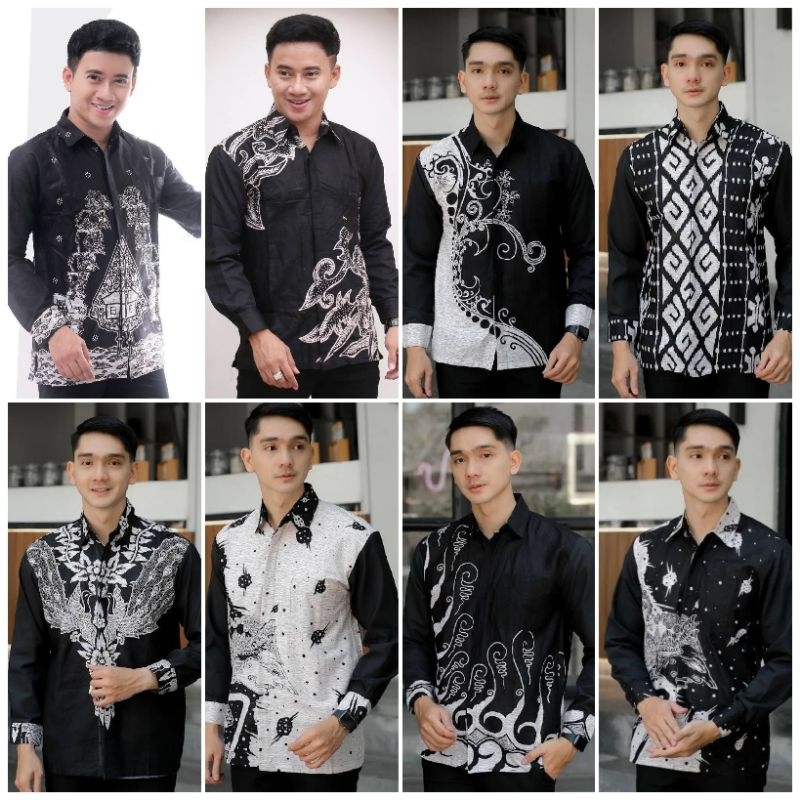 KEMEJA Sweet black men's long-sleeved batik shirt men's batik/ MONOKROM baju batik lelaki batik shirt