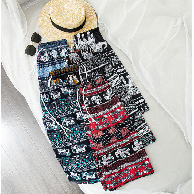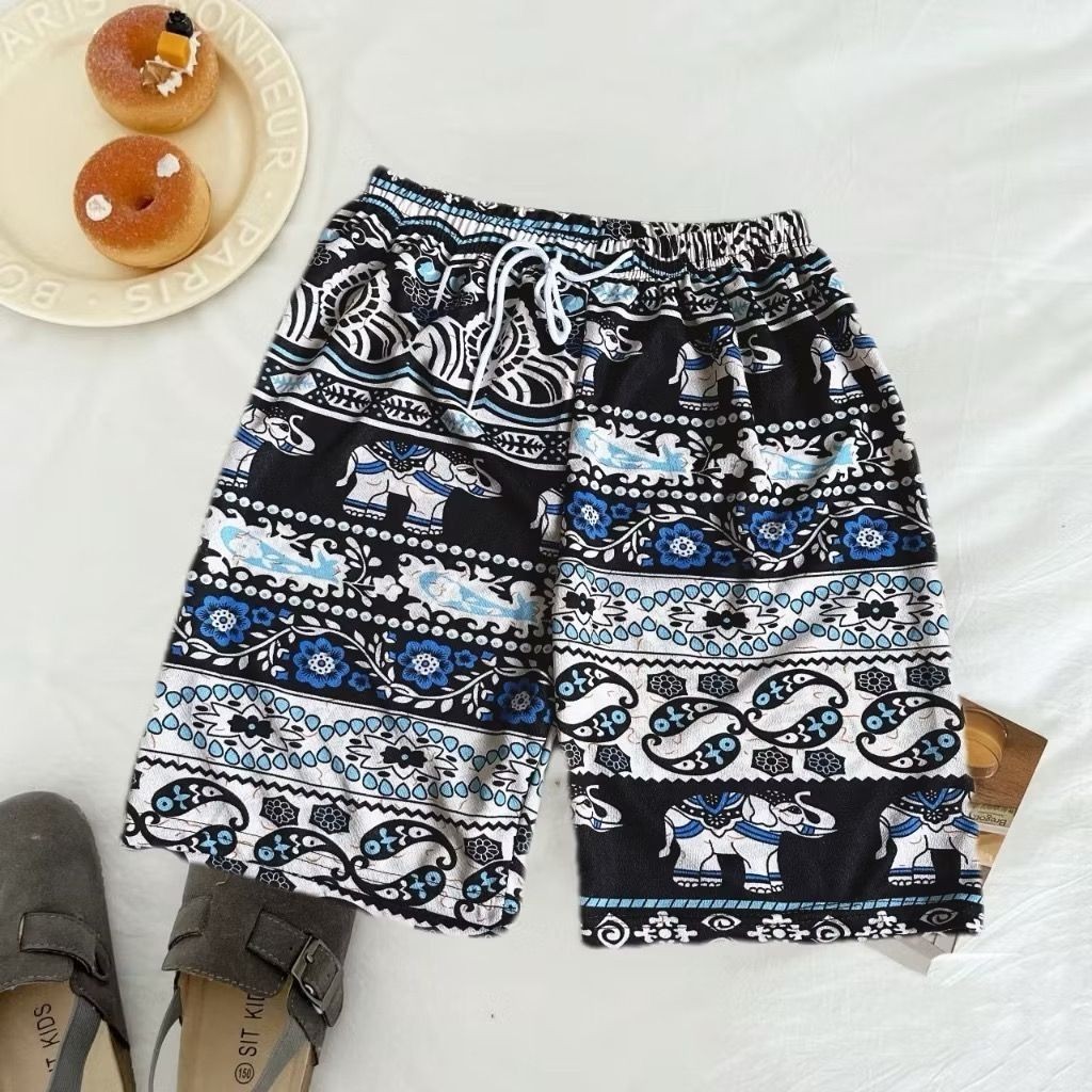 PNT66 ZONE Thai Elephant Pattern Shorts Women Summer Beach Shorts Thailand Elephant Print Summer Shorts Comfortable