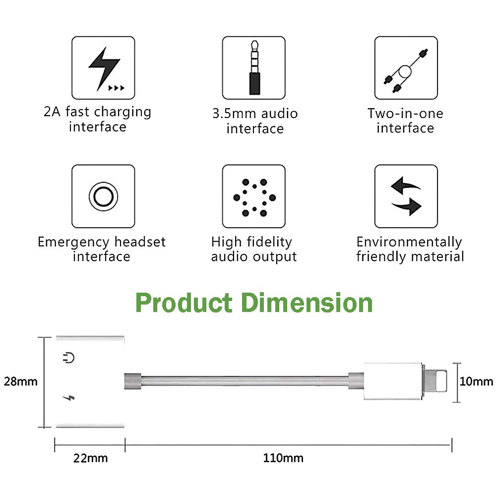 Double Lightning Splitter 2 in 1 Earphone Jack Audio+Charge