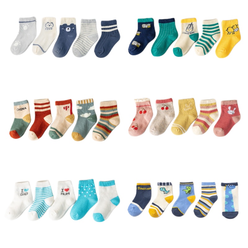 5 Pairs Baby Socks Newborn Boy Girl Cotton Socks Toddler Autumn Summer Cartoon Animals Children Kids Socks 0-5 Years