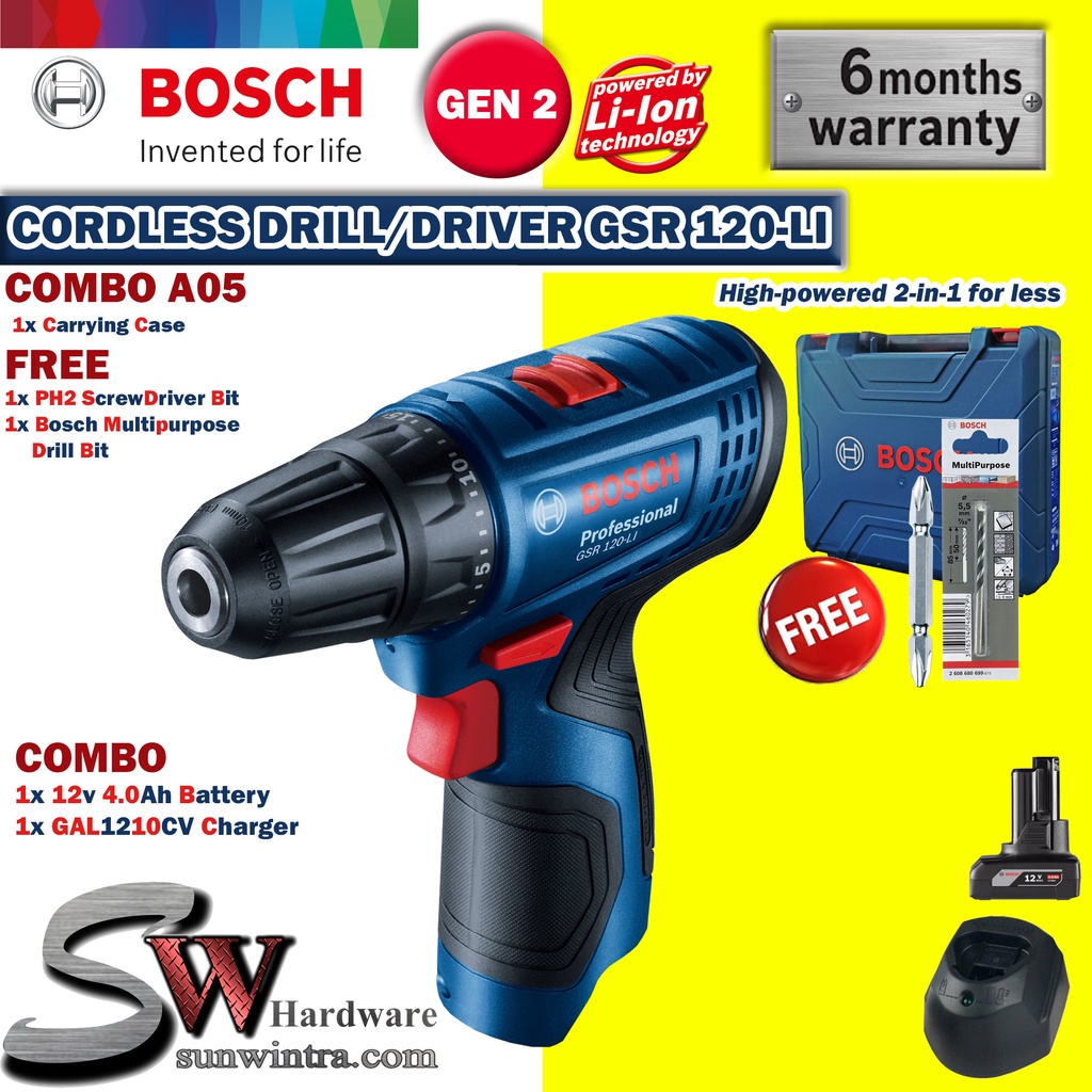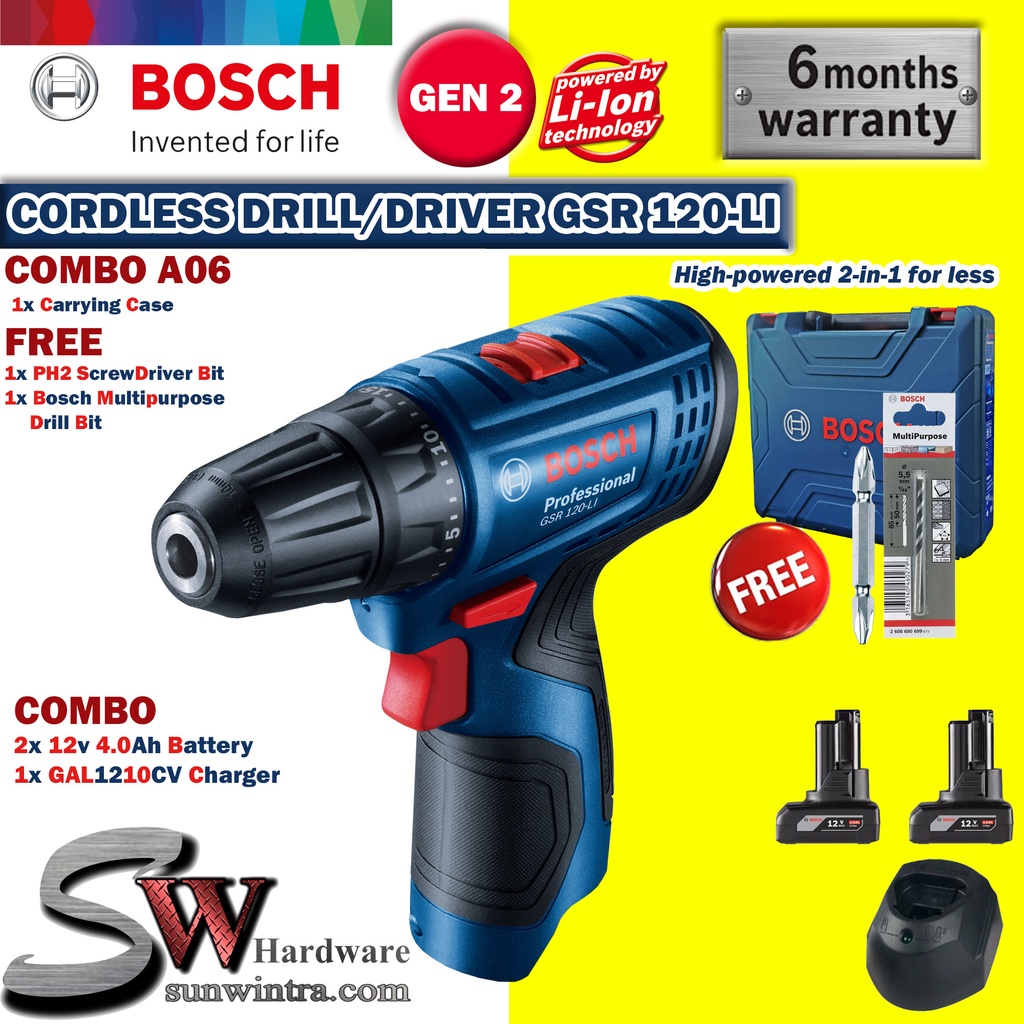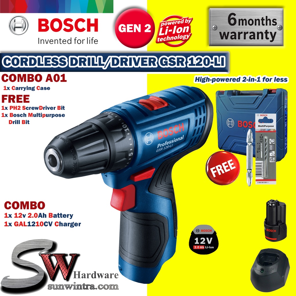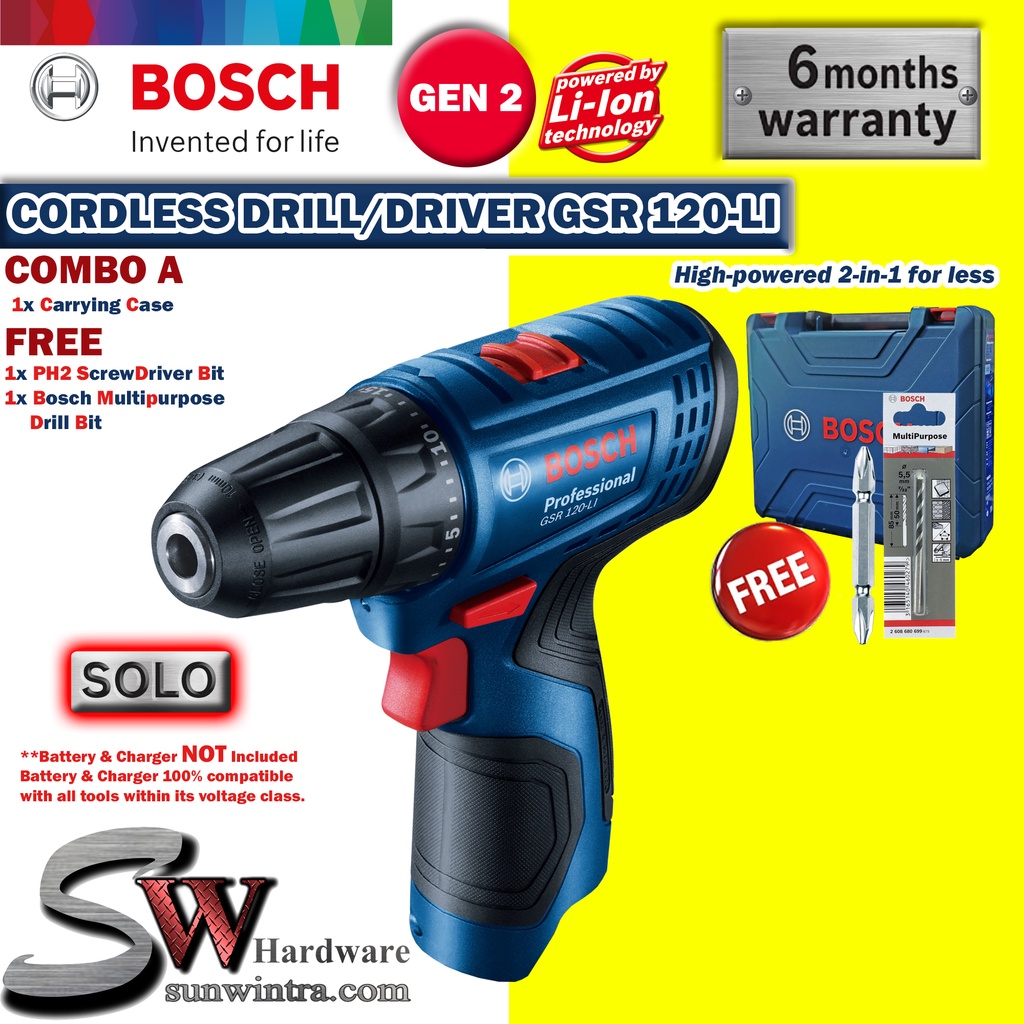 COMBO Bosch GSR120-LI Cordless Drill/Driver **SOLO or Battery Charger Set, F.O.C ScrewBit & Drill Bit GSR 120-LI GSR 120