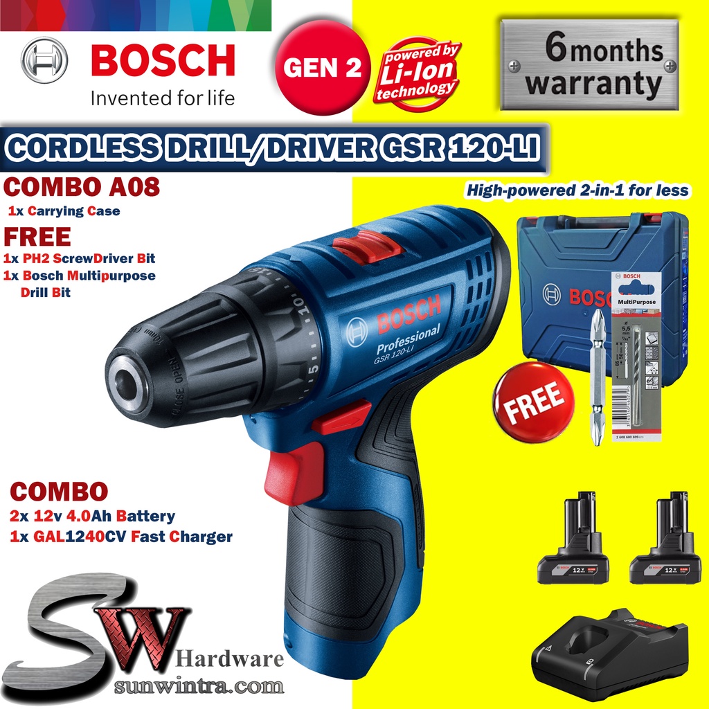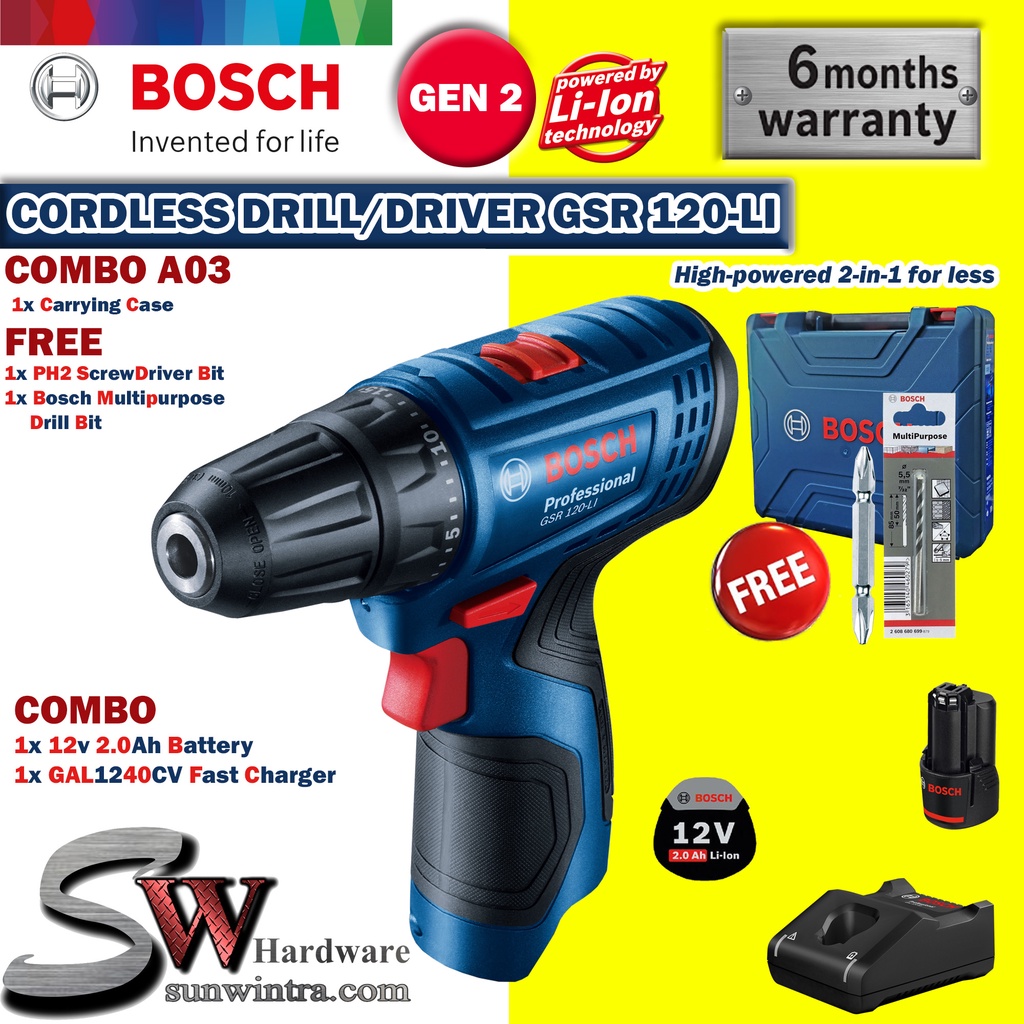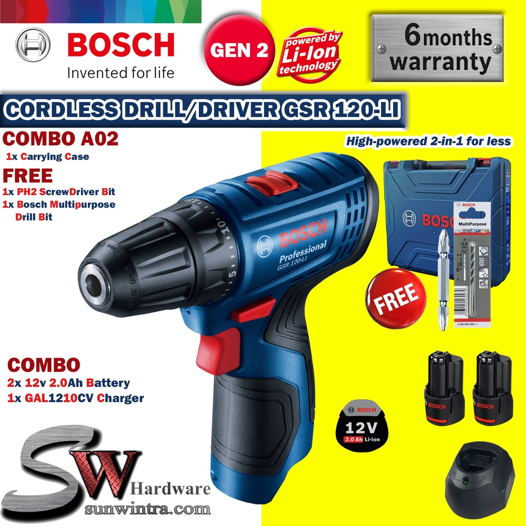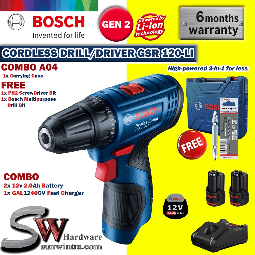 COMBO Bosch GSR120-LI Cordless Drill/Driver **SOLO or Battery Charger Set, F.O.C ScrewBit & Drill Bit GSR 120-LI GSR 120