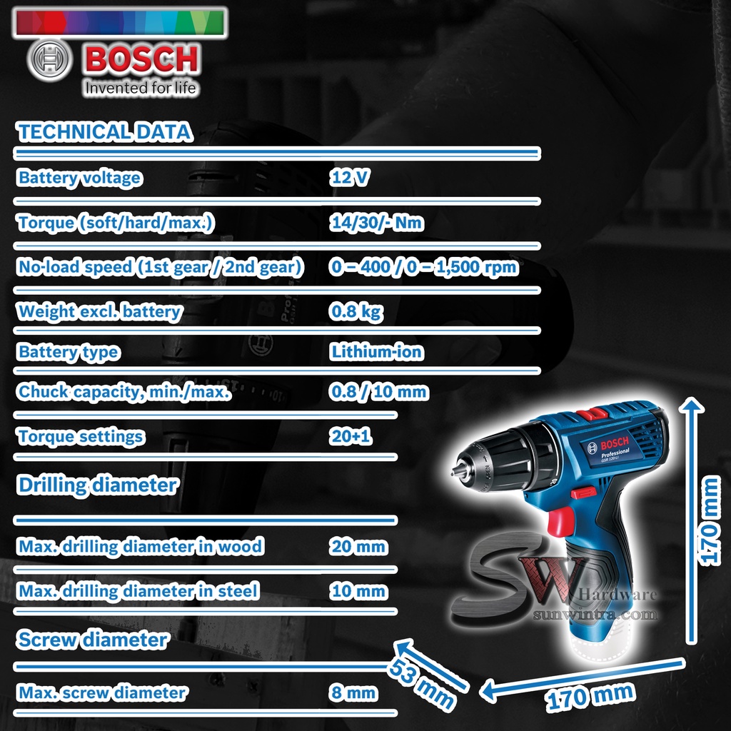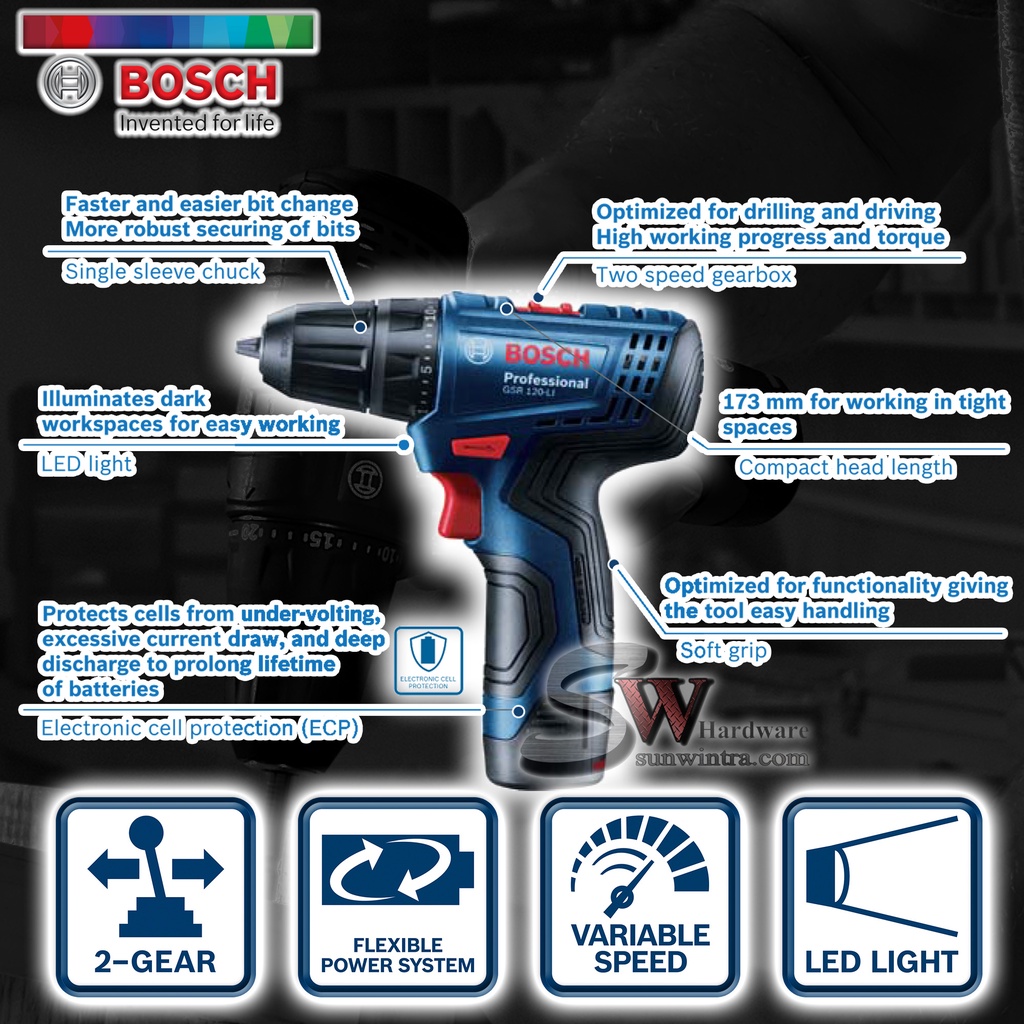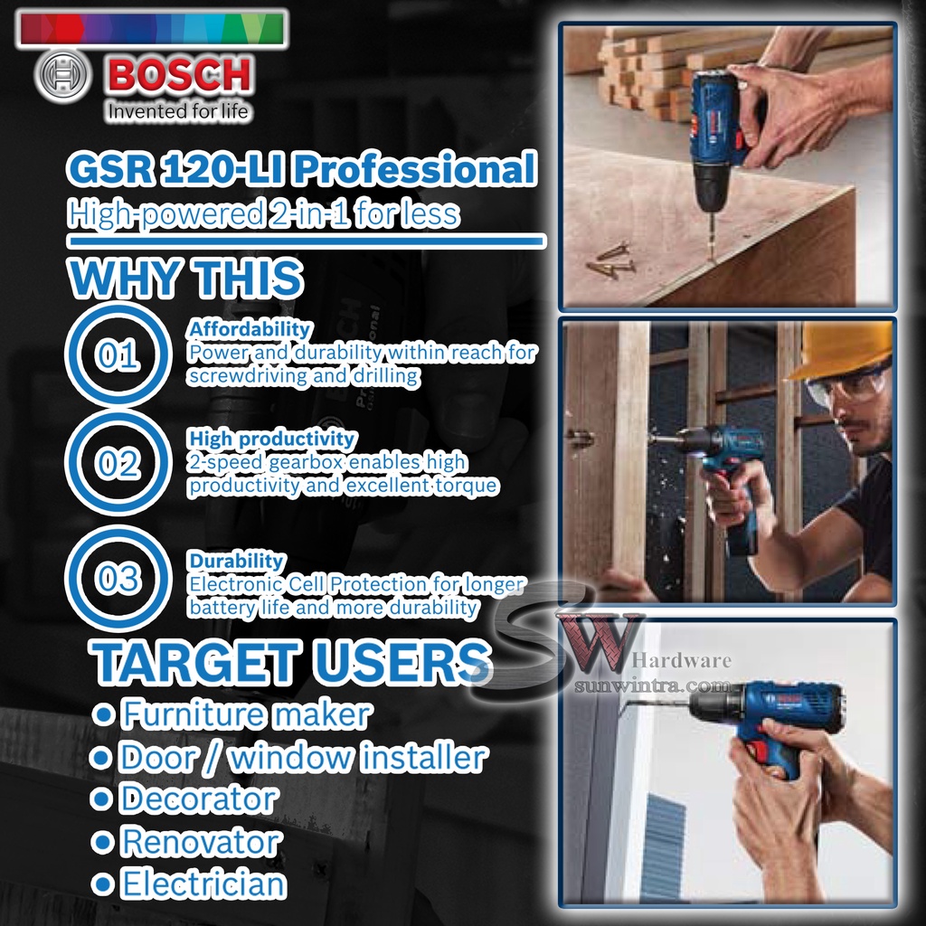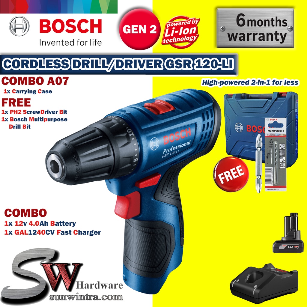 COMBO Bosch GSR120-LI Cordless Drill/Driver **SOLO or Battery Charger Set, F.O.C ScrewBit & Drill Bit GSR 120-LI GSR 120