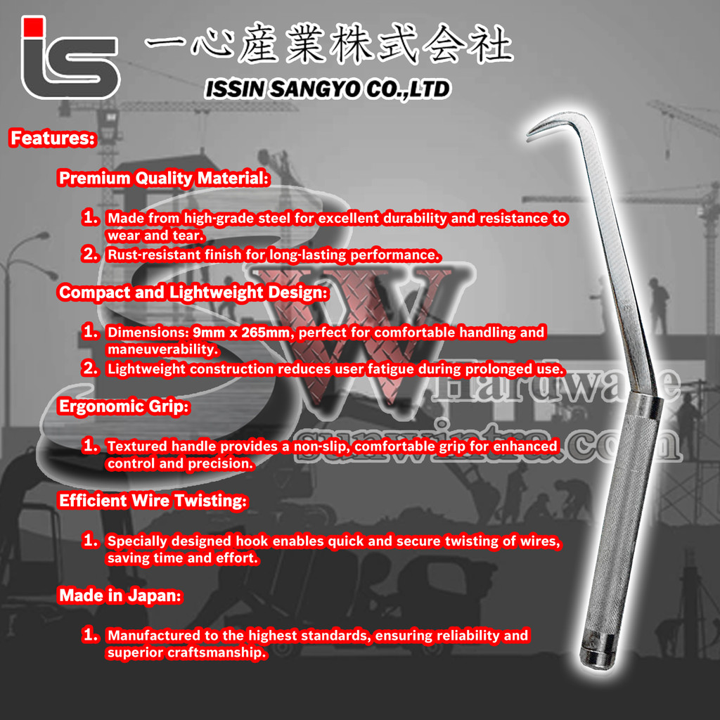 ISSHIN #119 WIRE TWISTER SQUARE TUBE 9MM (T) X 265MM (L) WIRE HOOK HACKER