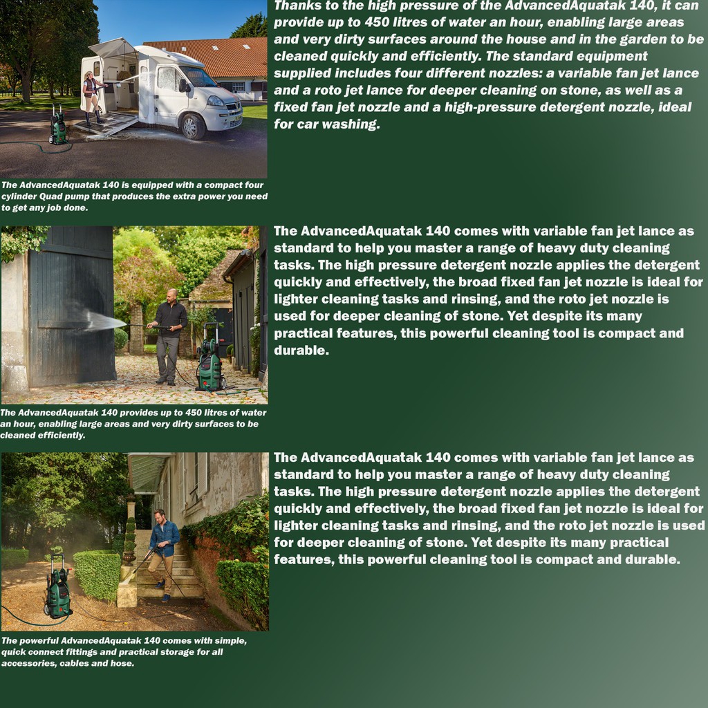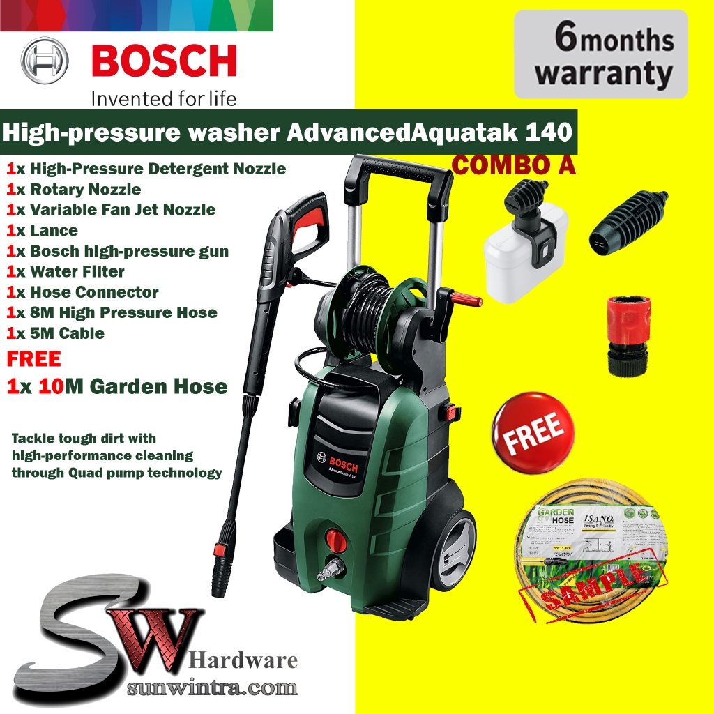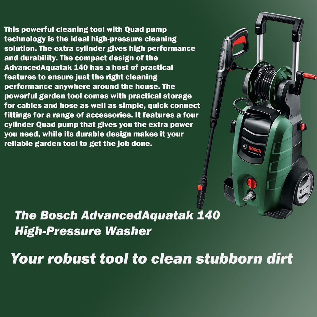 Bosch Advanced Aquatak 140 High-pressure washer 140Bar c/with Complete Accessories & 10M Garden Hose(F.O.C)