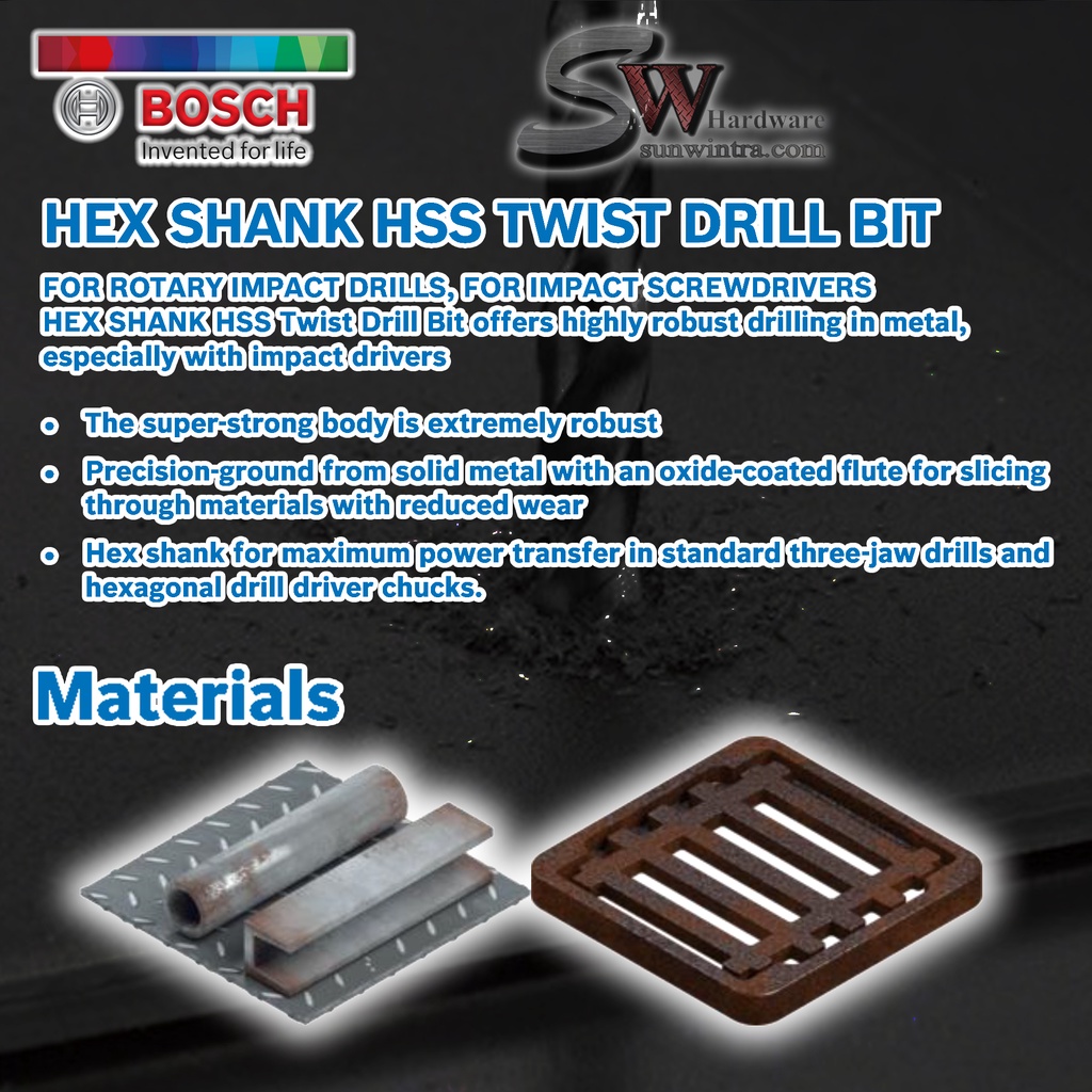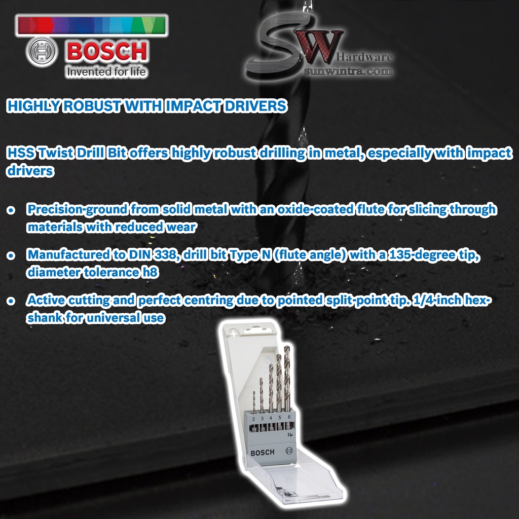 BOSCH 5pcs HSS Metal drill bit sets Hss-G with 1/4“ Hex Shank #2608595517
