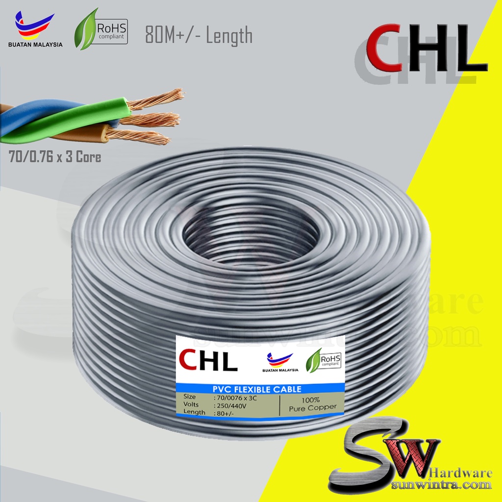 3 Core Flexible Cable | 23/0.16 & 40/0.76 & 70/0.76 Flexible Wire | Wayar Kabel Elektrik Wayar