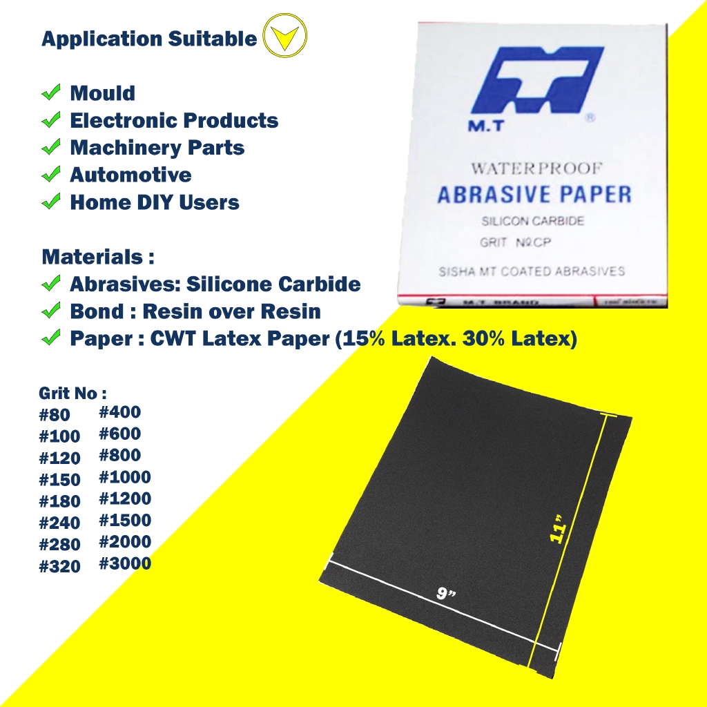 MT Waterproof Abrasive Sand Paper (9" x 11") Grit Selection Available