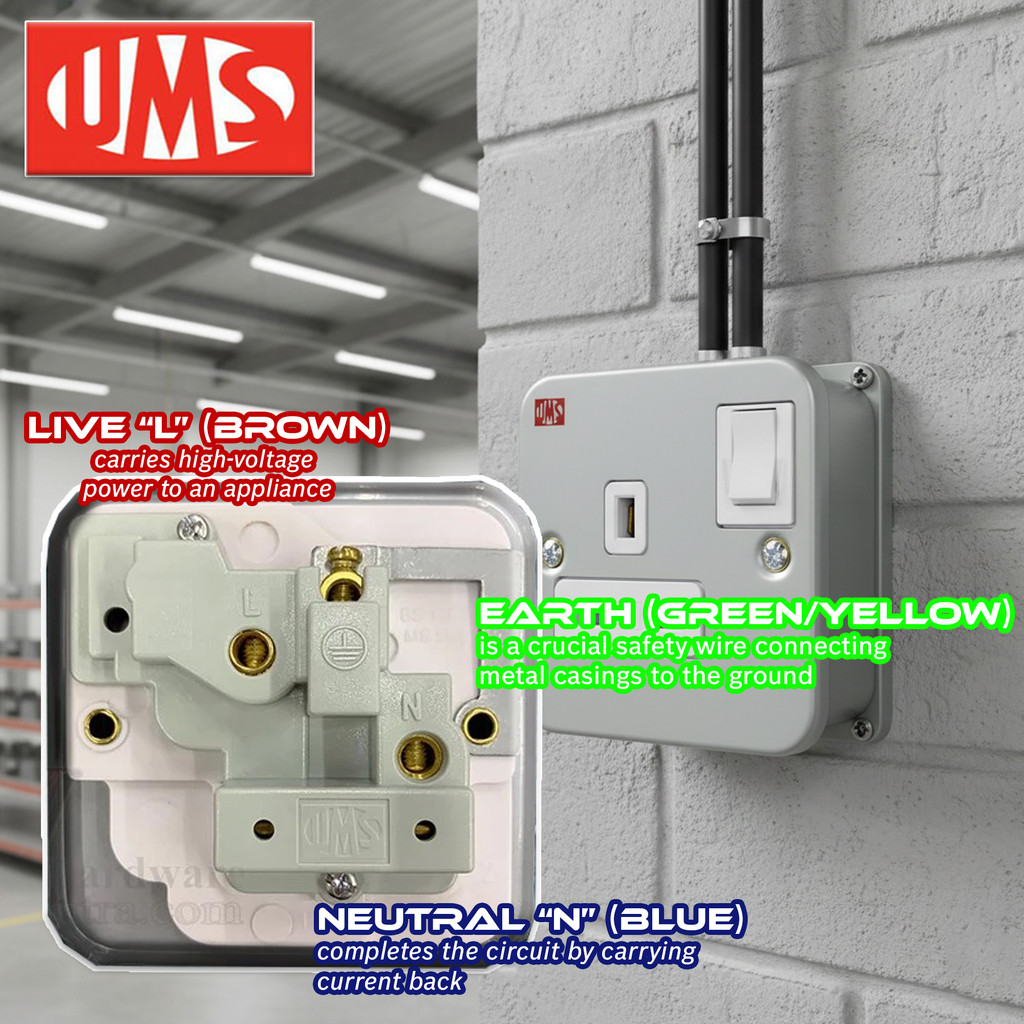 UMS 1213M 1213 M 13A 1 Gang Metal Clad Switched Socket Outlet | Soket Besi 1-Gang | 单位金属插座