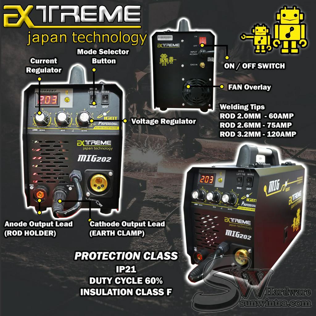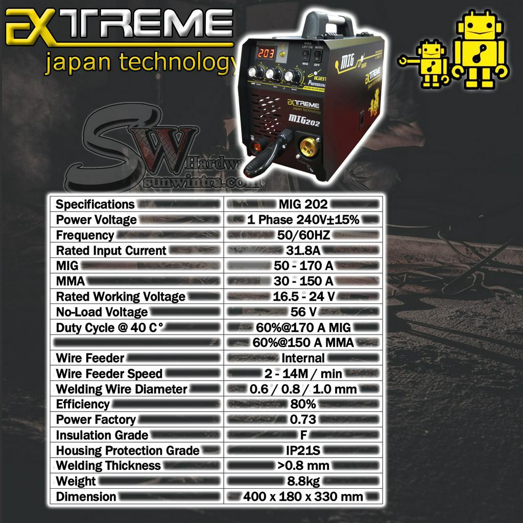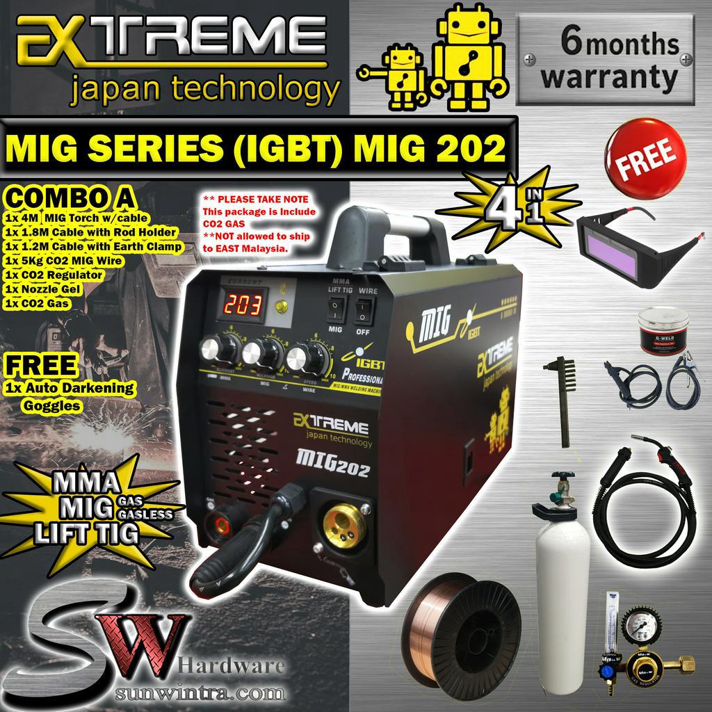 EXTREME JAPAN TECHNOLOGY 4 IN 1 MIG202 MIG/TIG/MMA WELDING / ARC WELDING 5KG Gas Set F.O.C Auto Darkening Goggles