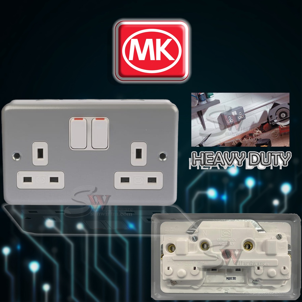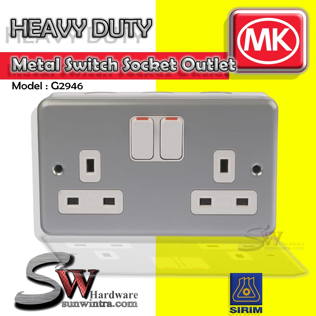 MK G2946 13A DOUBLE SWITCH SOCKET OUTLET Metal Socket / SOKET SUIS / MK Socket / Socket Besi ( METAL CLAD )