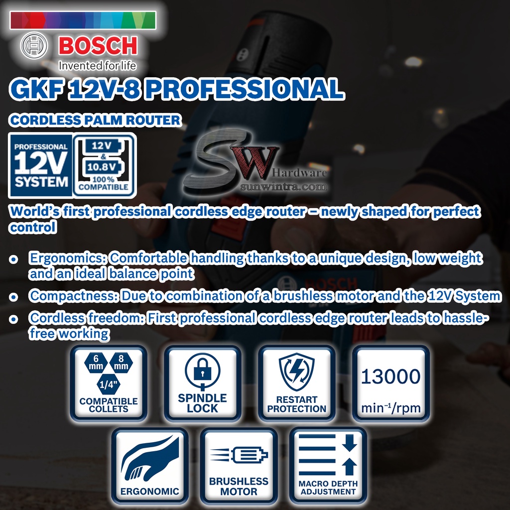 Bosch Cordless Palm Router GKF12V-8 Professional GKF 12V-8 , **SOLO or Battery & Charger