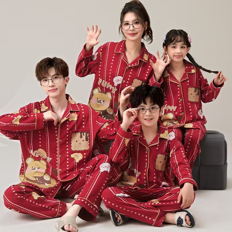 Parent-Child Pajamas Family Wear/Pure Cotton Long-Sleeved Trousers Loungewear Set/Christmas New Year Party Holiday Pajamas