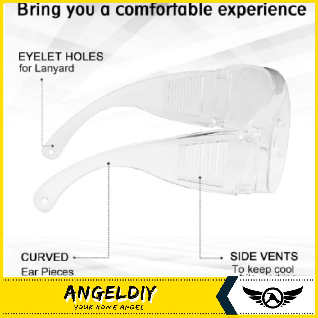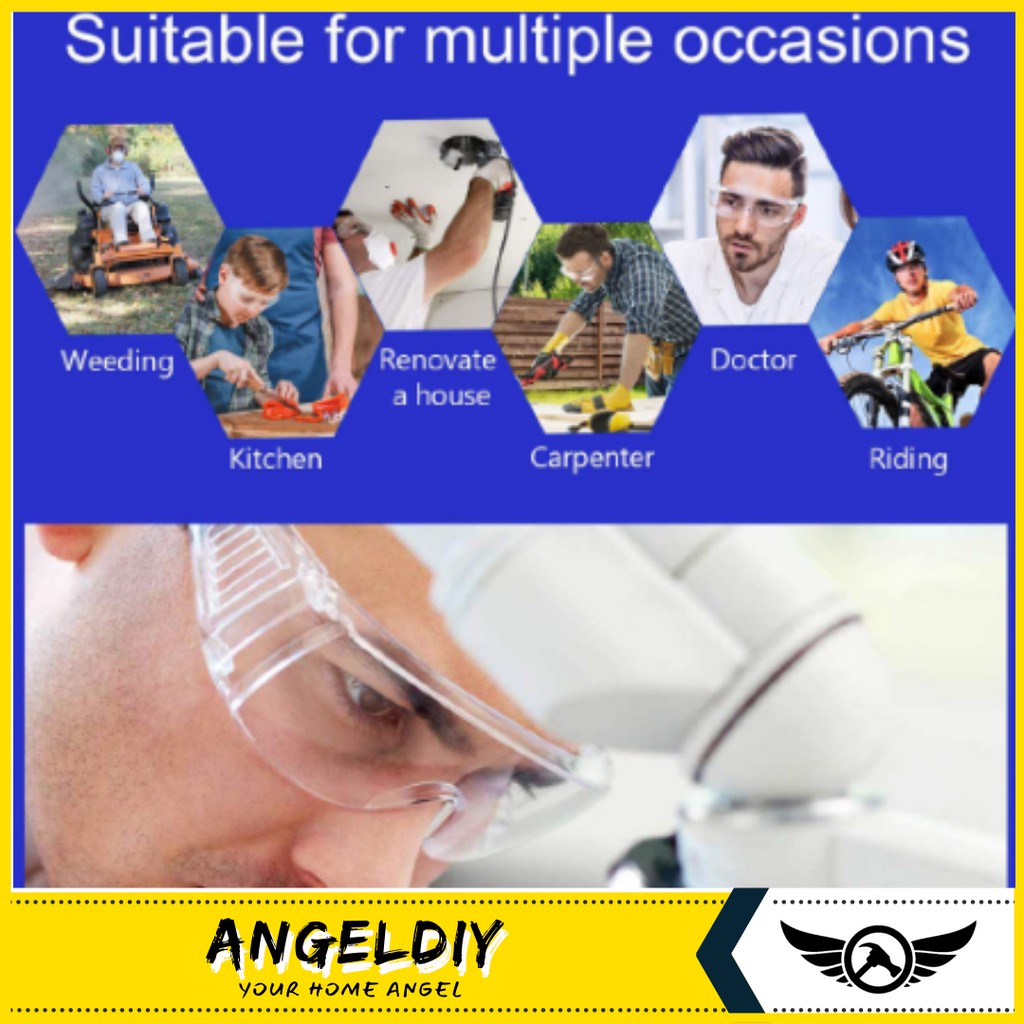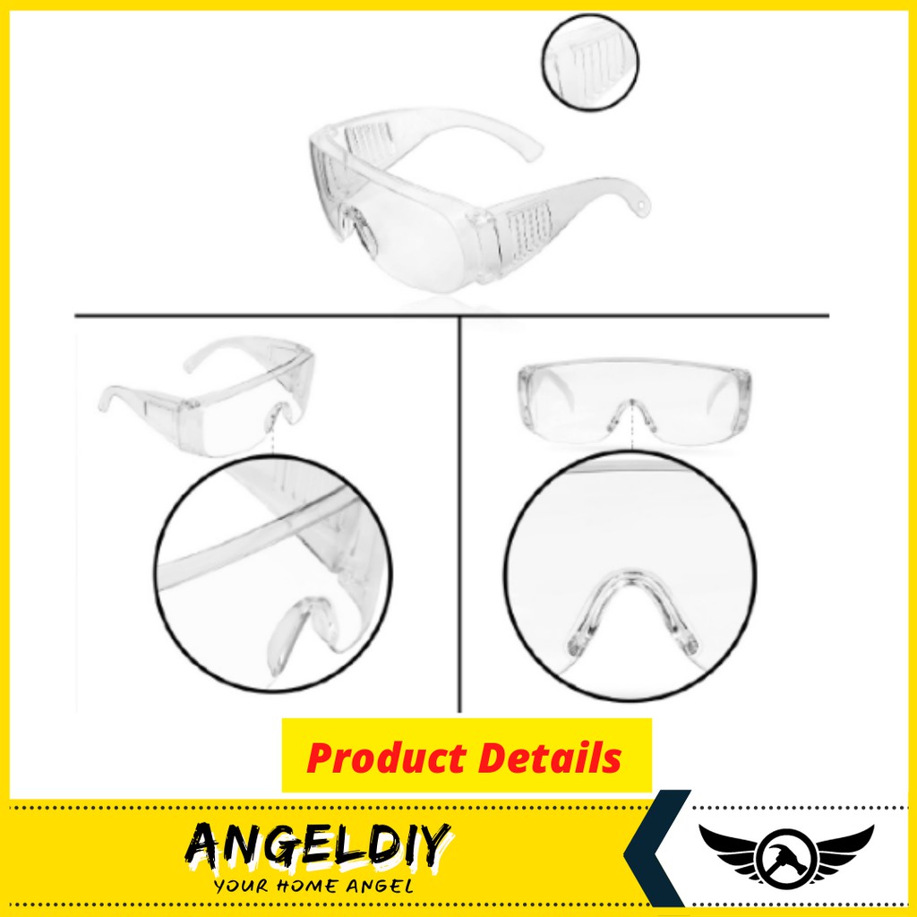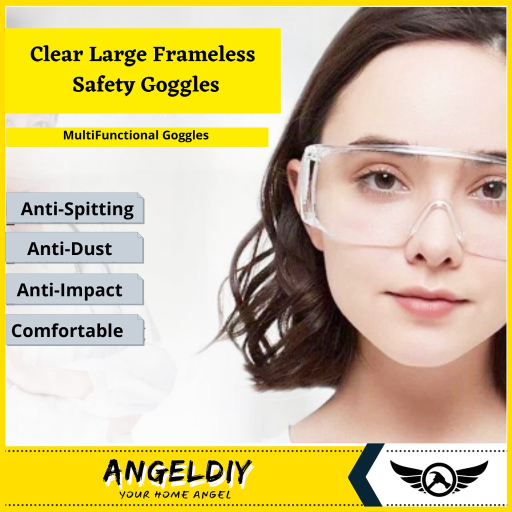 Transparent Glasses Goggles Large Frameless Safety Eyewear Protection Dustproof Waterproof Clear Medical - Spek Mata