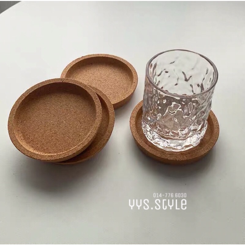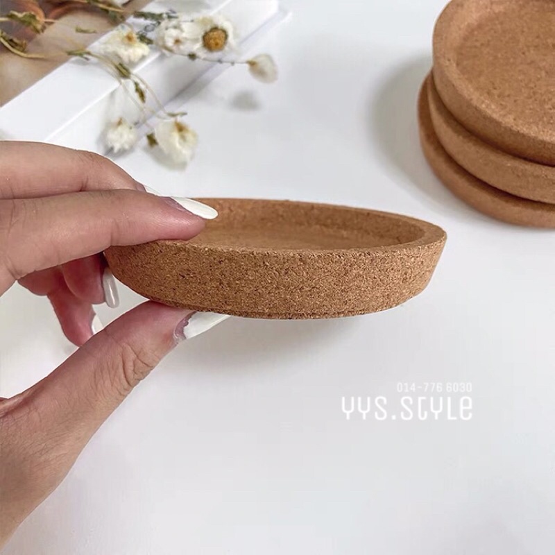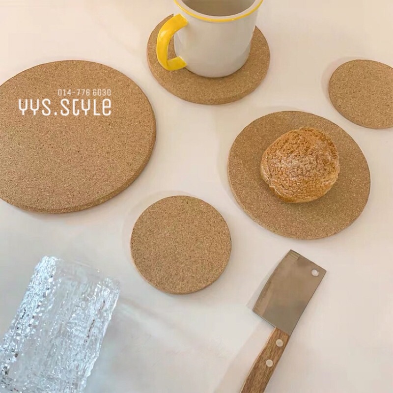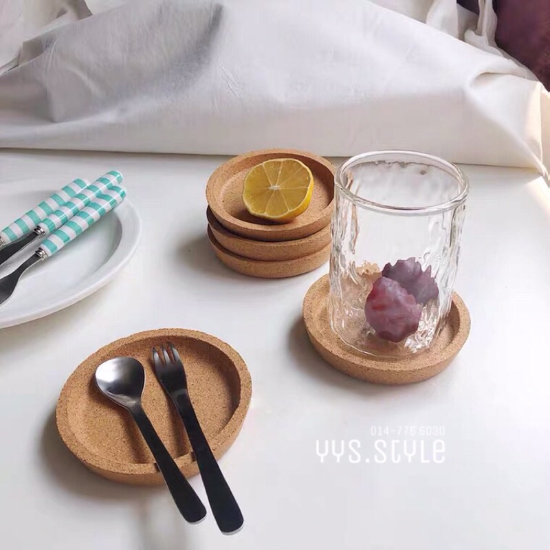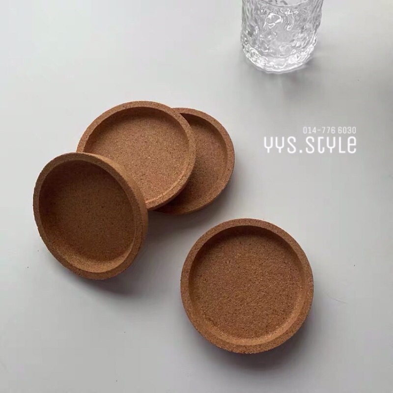 Ready Stock🚚 10cm IKE.A Coaster Cork Thick Material Glass Cup Mug Alas Gelas Cawan Costers Cat Mat 木制软木圆形杯垫加厚防滑