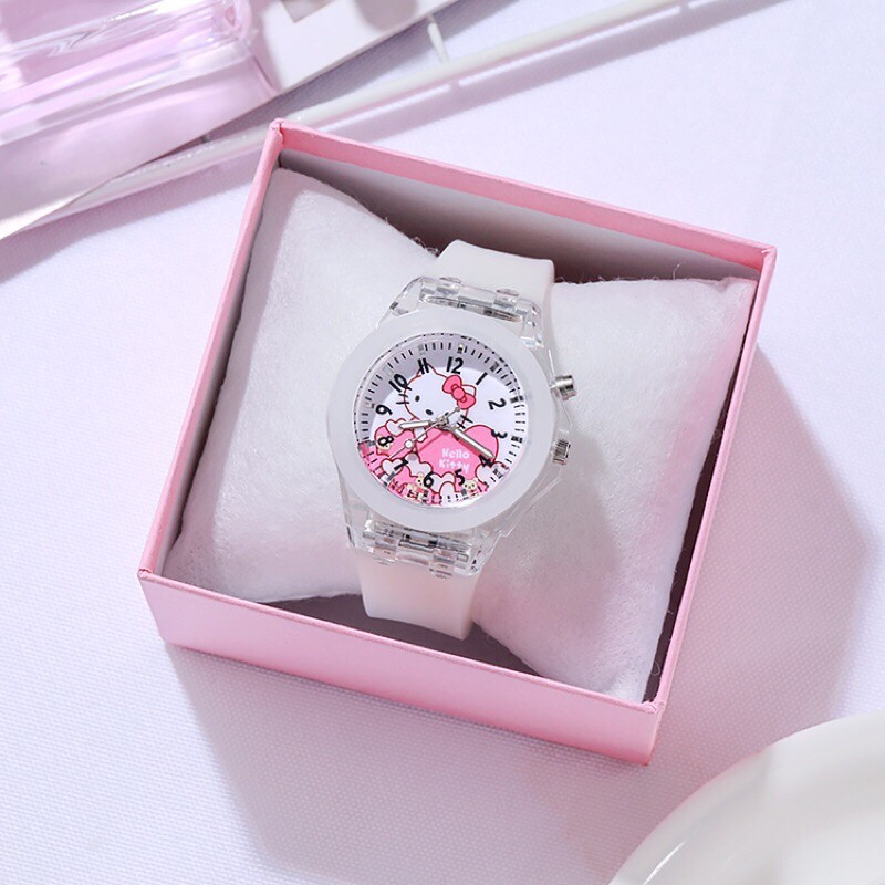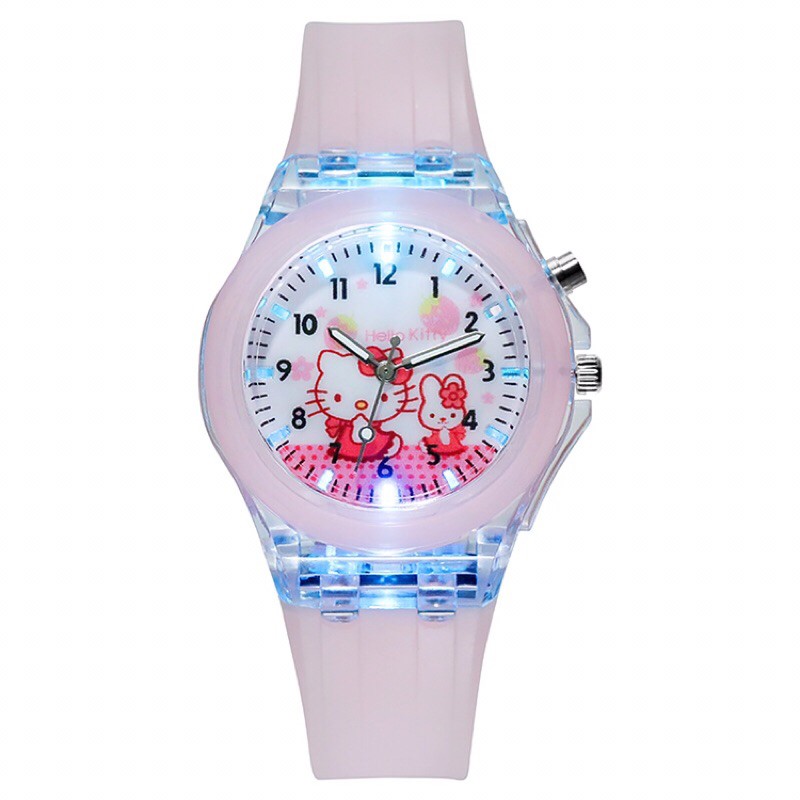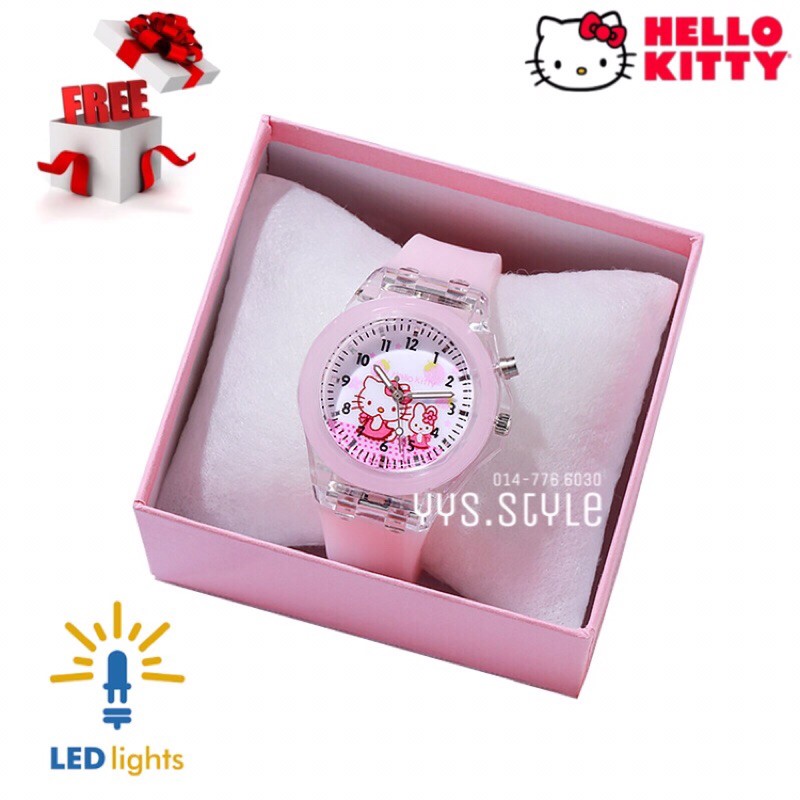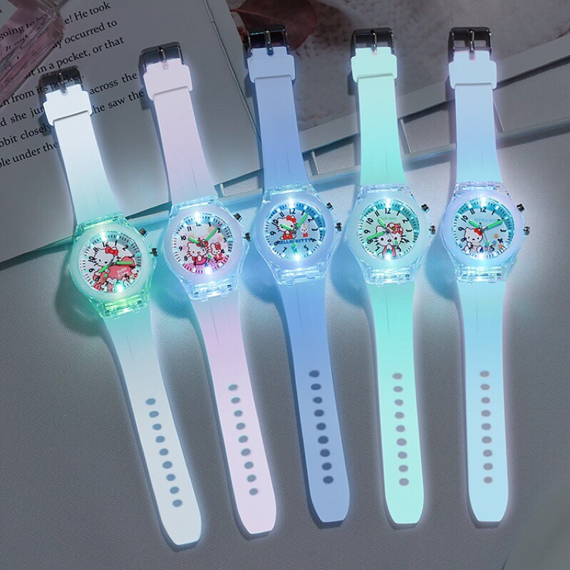 LED Jam Tangan Budak Kanak Hadiah Luminous Silicone Cute Cartoon Sport Casual Hello Kitty Kids Girl Watch Gift 小孩子儿童发光手表
