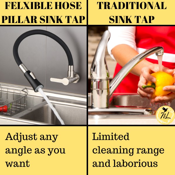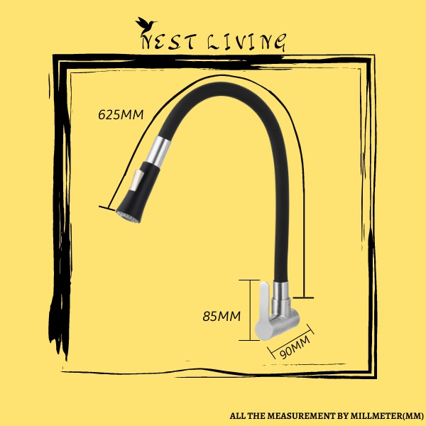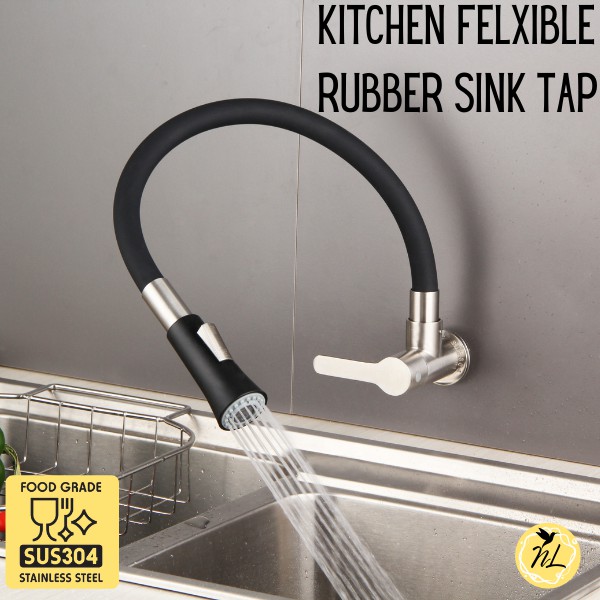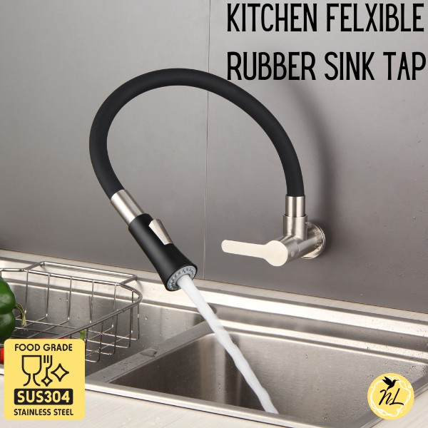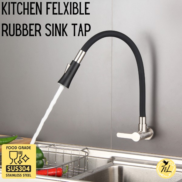 Paip Sink Dapur Dinding SUS 304 Hos Silikon Getah Fleksibel Kitchen Wall Sink Tap HM-3302F