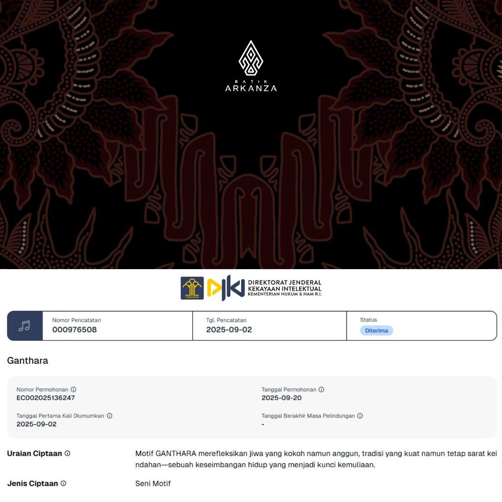 KEMEJA Arkanza Signature Ganthara Motif Men's Long Sleeve Batik Shirt Exclusive Curved Hem Precision Stitching Hidden & Embossed Button Tricot Lining Breathable PRM