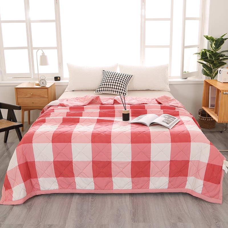 🚀Latticed Summer Quilts Washable Single Double Queen Blanket Bedspread Air Conditioning Girls Boys Comforter