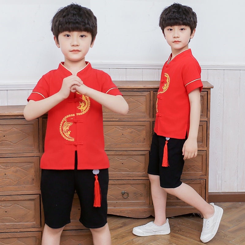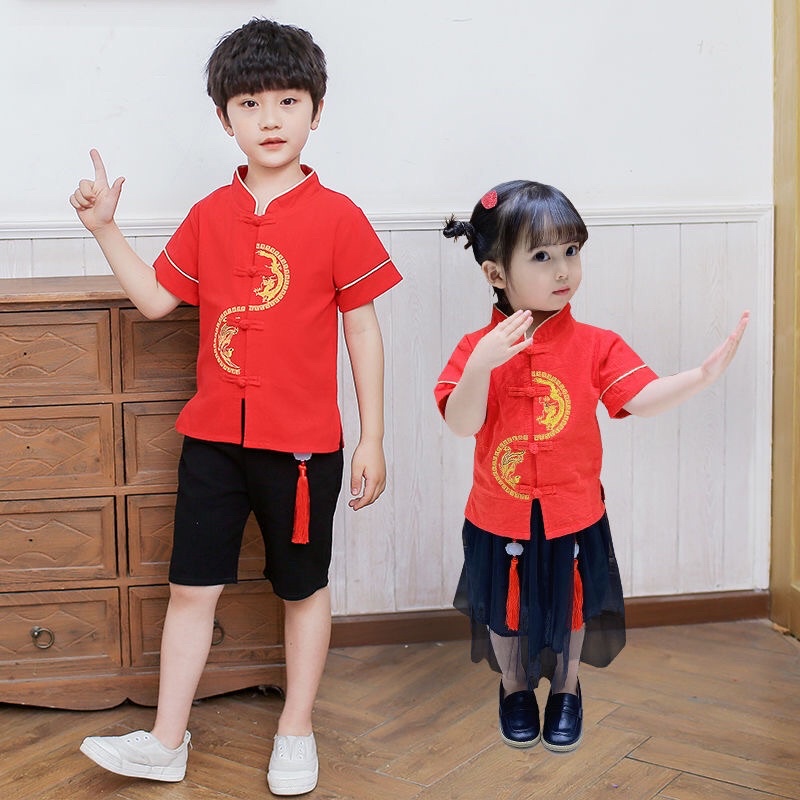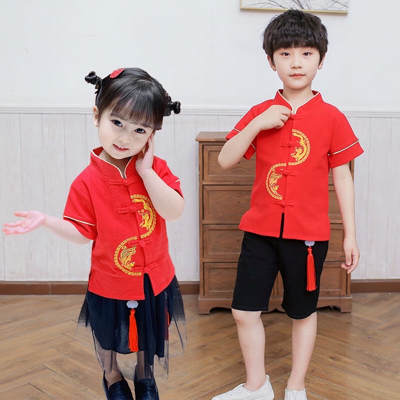 🧧欢庆农历新年2022-龙凤呈祥🧧BRO & SIs 🌱Outfit, 2Pcs/Set Short Sleeve T-shirt Tops+Camouflage Pants Clothes