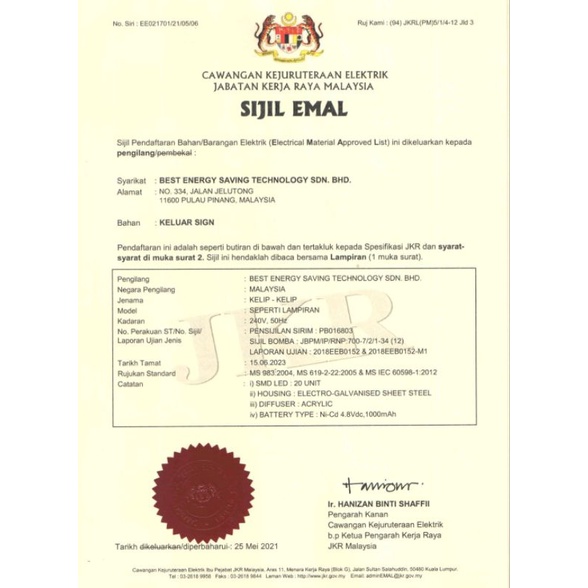 KELIP-KELIP LED Keluar Sign BE1ST 101B / Papan Keluar (Sirm Bomba Approved)
